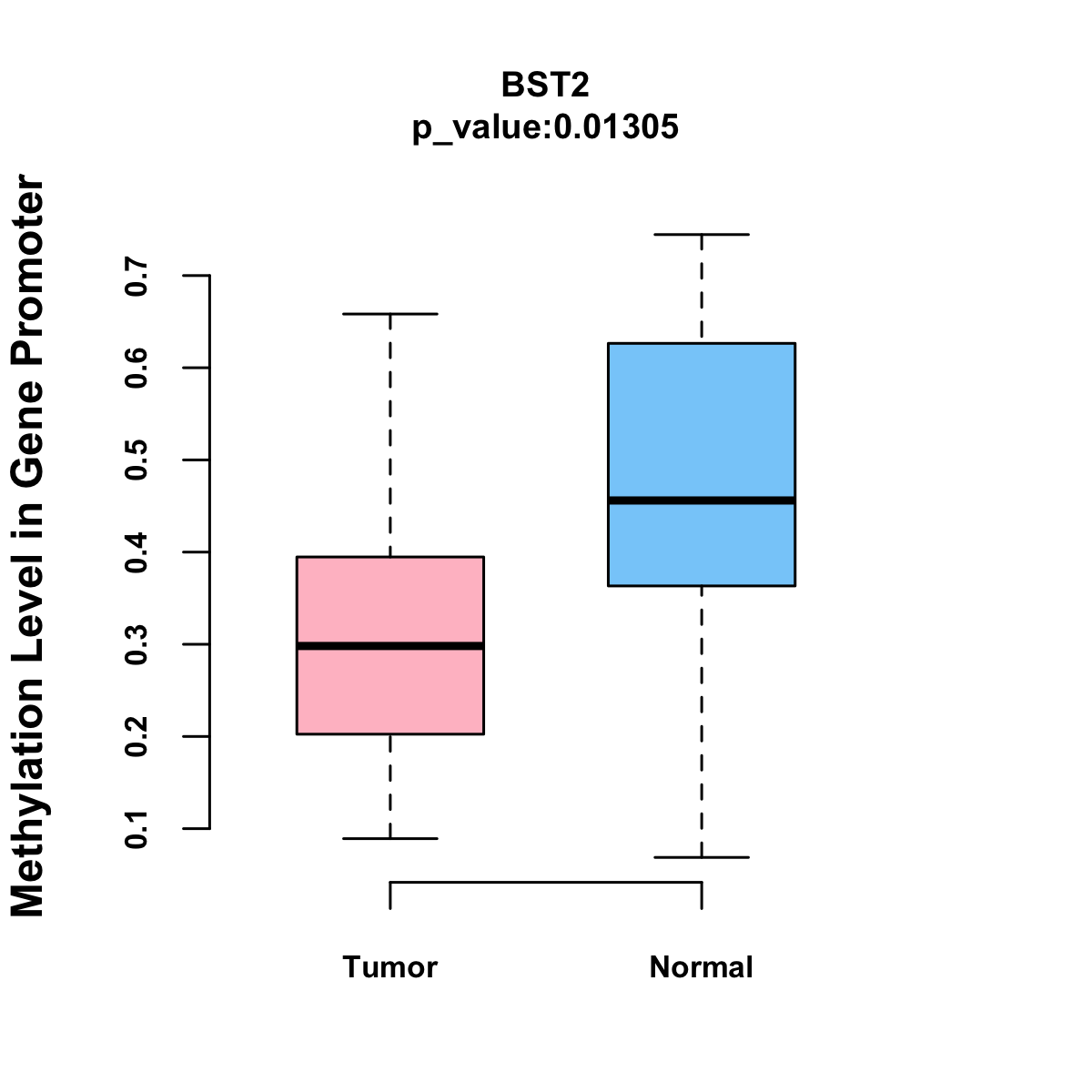 | Box Plot in Pancreatic Cancer | Expression-Methylation Scatter Plot in Pancreatic Cancer |