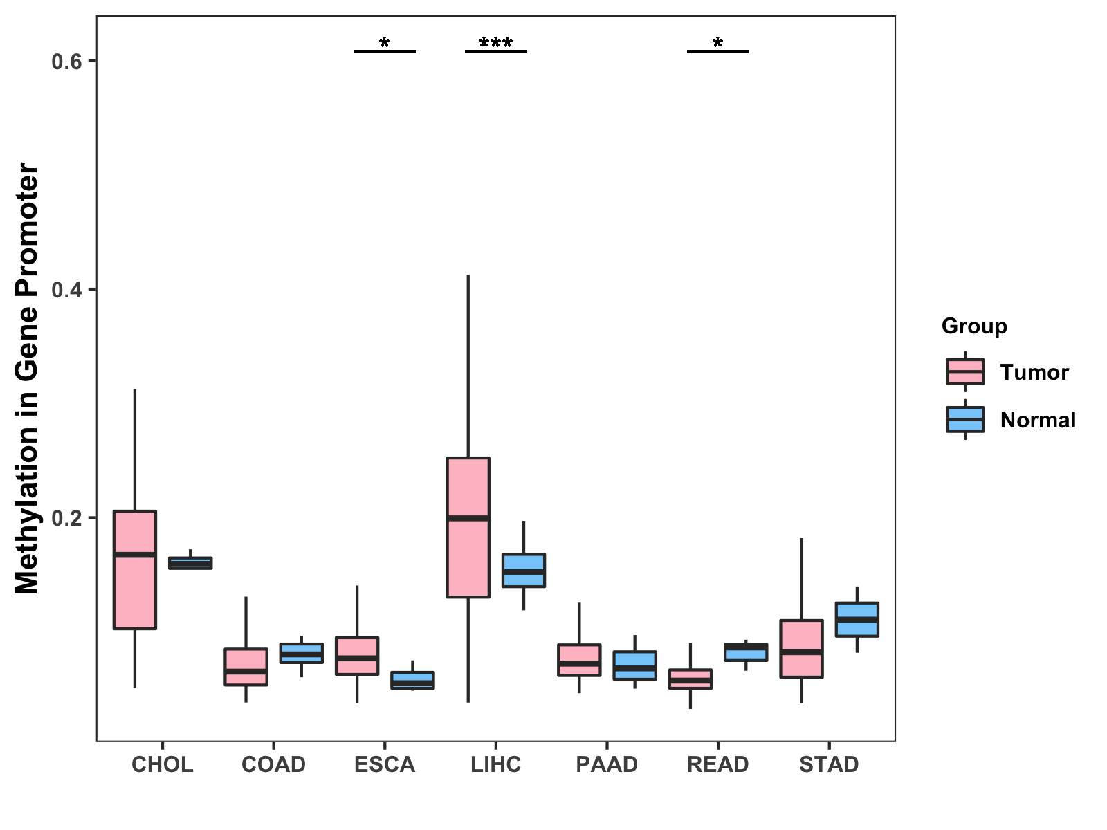 Methylation Level in Colon Cancer MODERATE Methylation Level in Rectum Cancer MODERATE