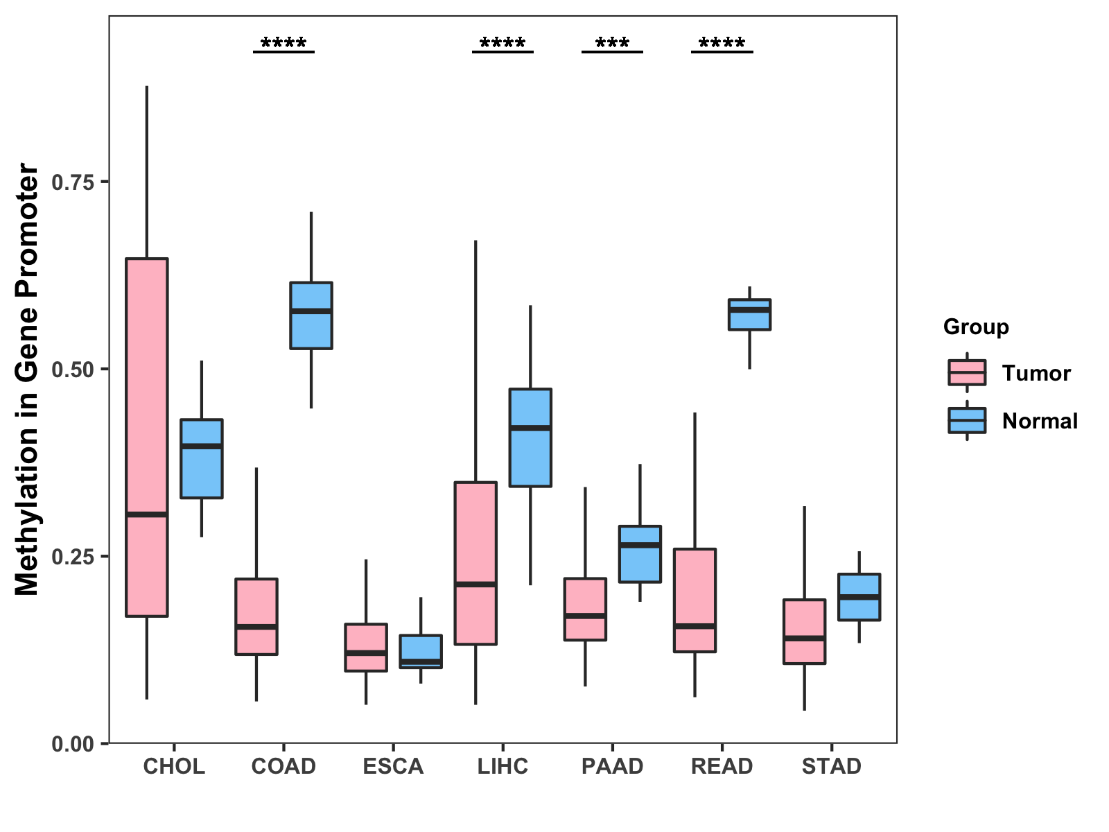 Methylation Level in Colon Cancer LOW Methylation Level in Rectum Cancer LOW