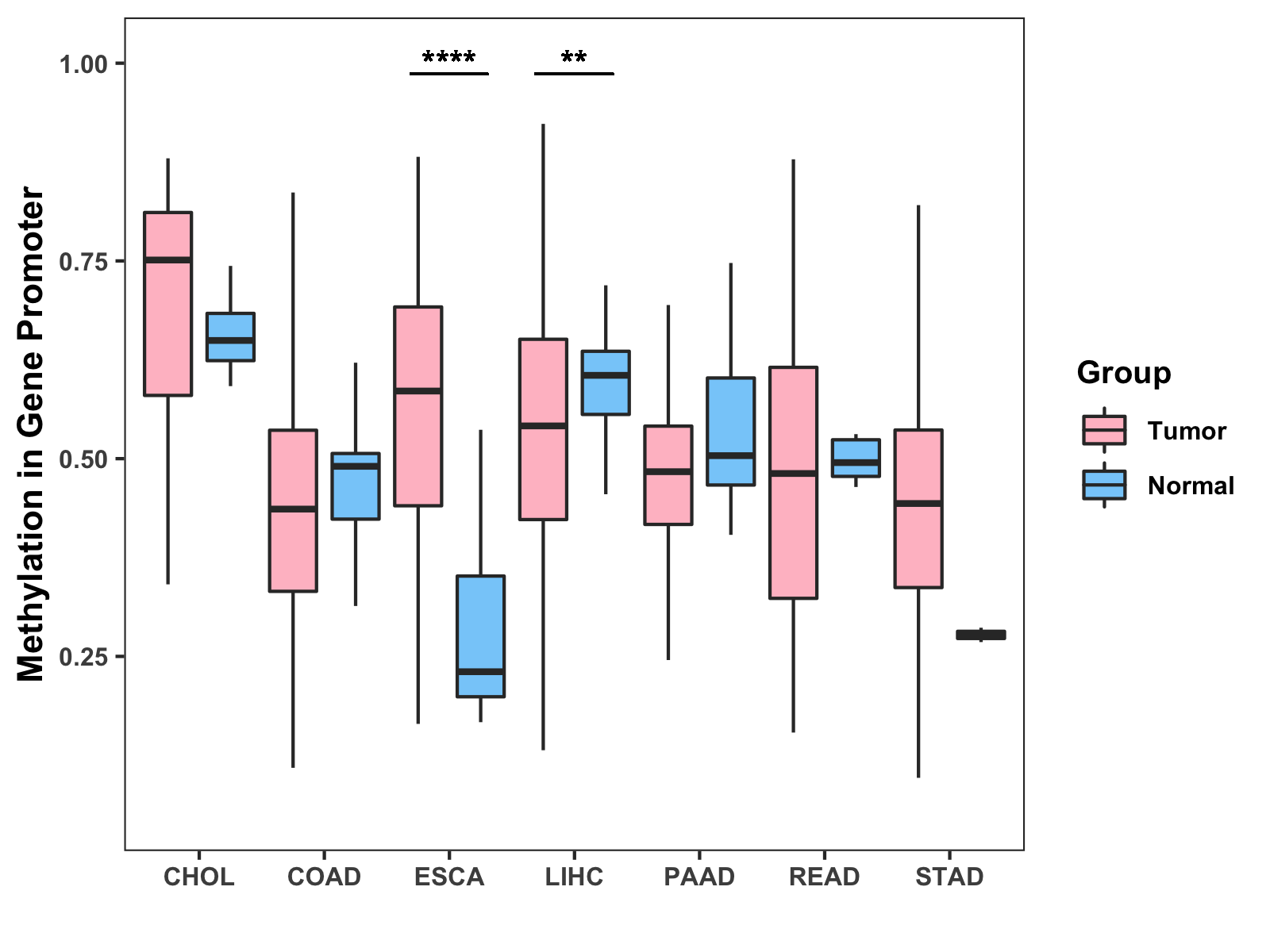 Methylation Level in Colon Cancer MODERATE Methylation Level in Rectum Cancer MODERATE