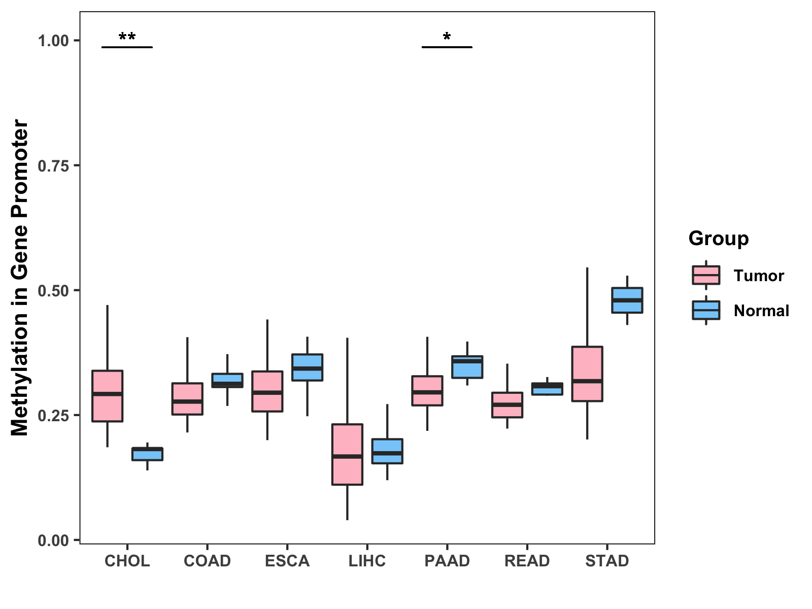 | Box Plot in Biliary tract Cancer | Expression-Methylation Scatter Plot in Biliary tract Cancer |