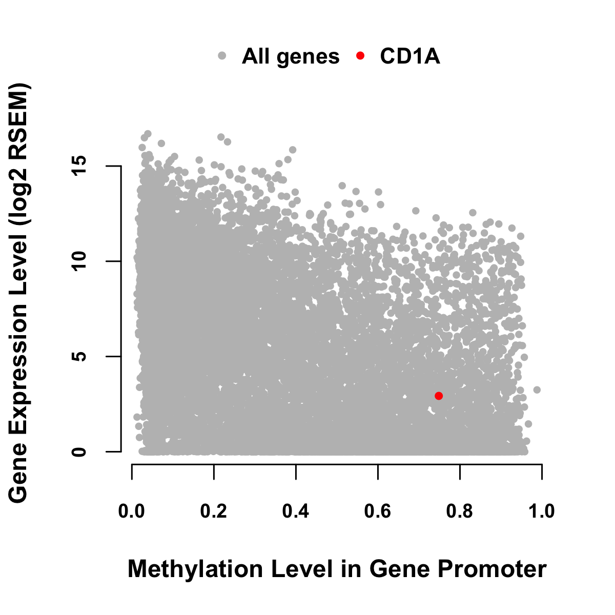 Expression-Methylation Scatter Plot in Colon Cancer Expression-Methylation Scatter Plot in Rectum Cancer