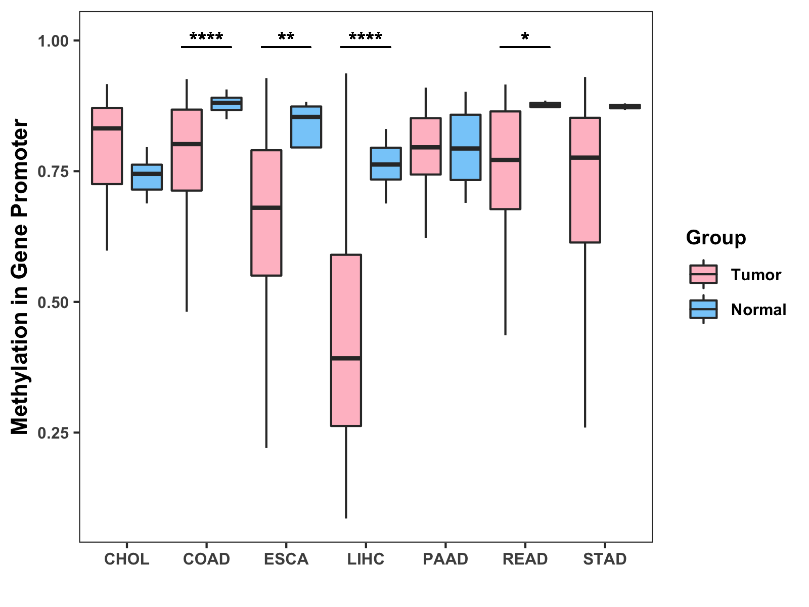 Methylation Level in Colon Cancer MODERATE Methylation Level in Rectum Cancer LOW