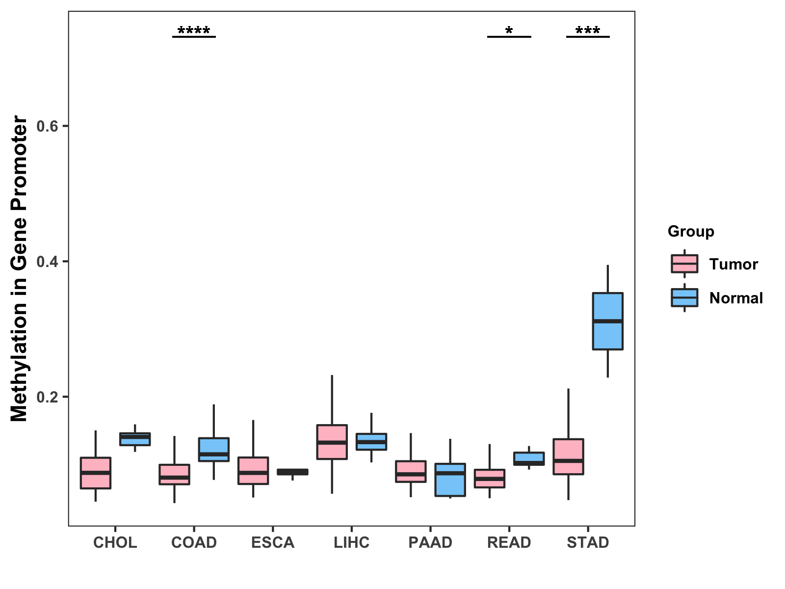 Methylation Level in Colon Cancer MODERATE Methylation Level in Rectum Cancer MODERATE