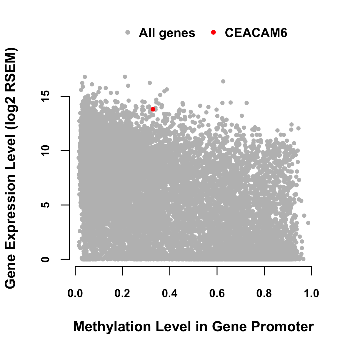 | Box Plot in Pancreatic Cancer | Expression-Methylation Scatter Plot in Pancreatic Cancer |