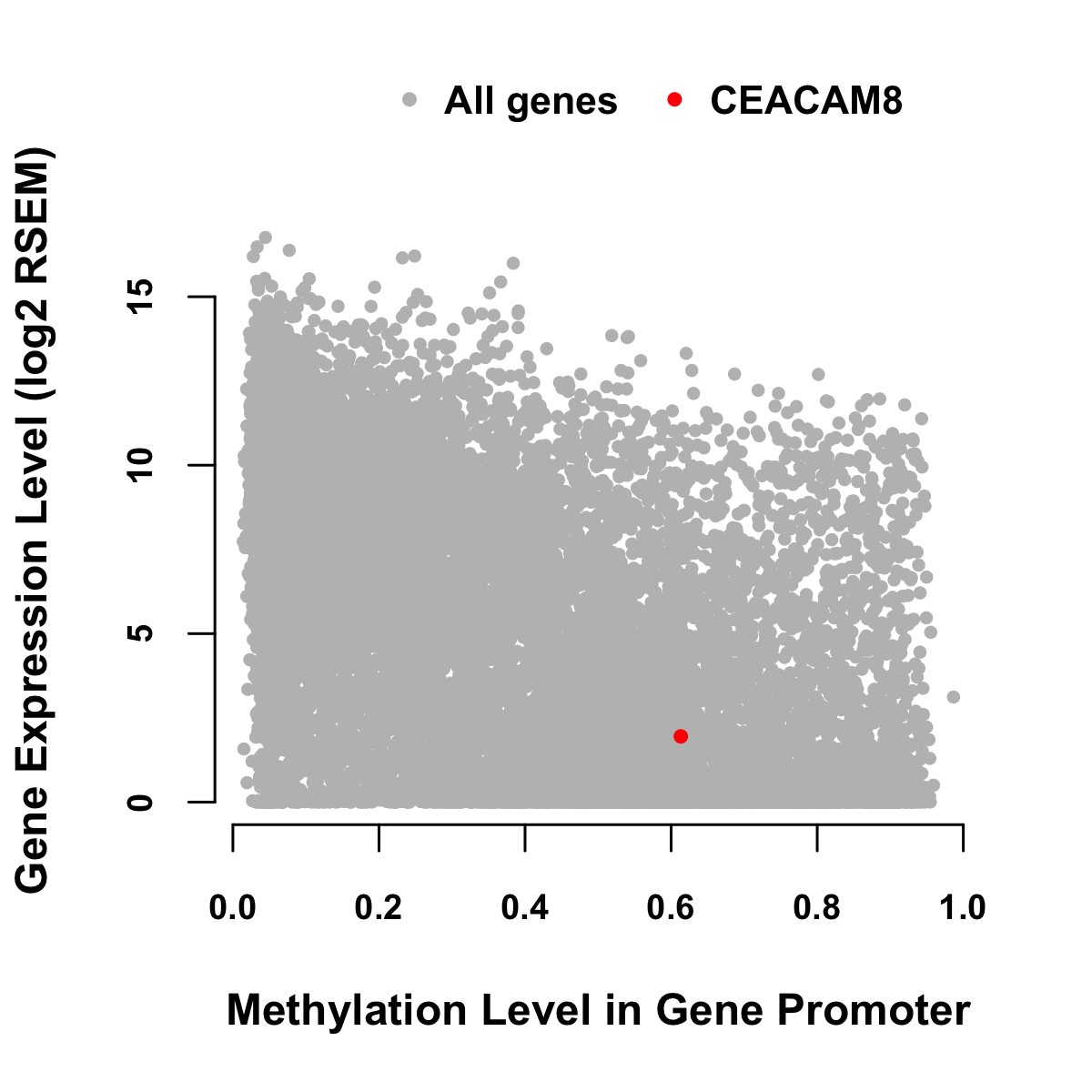 Expression-Methylation Scatter Plot in Colon Cancer Expression-Methylation Scatter Plot in Rectum Cancer