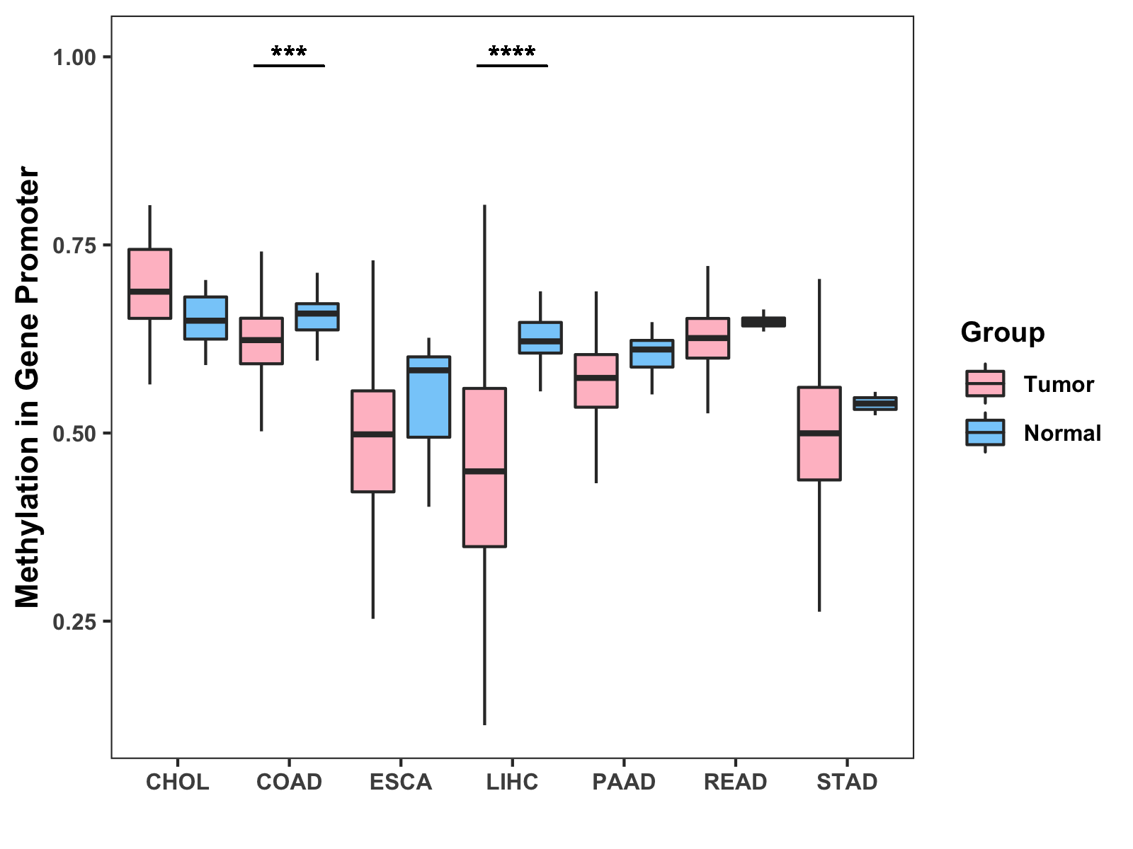 Methylation Level in Colon Cancer MODERATE Methylation Level in Rectum Cancer MODERATE