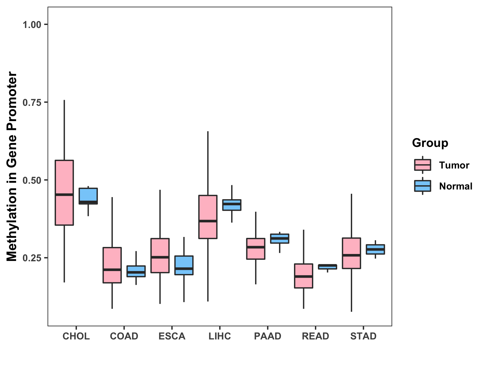 Boxplot of All Gastrointestinal Cancer ( * : 0.01-0.05 , ** : 0.005-0.01 , *** : 0.0001-0.005 , **** : < 0.0001 ) |