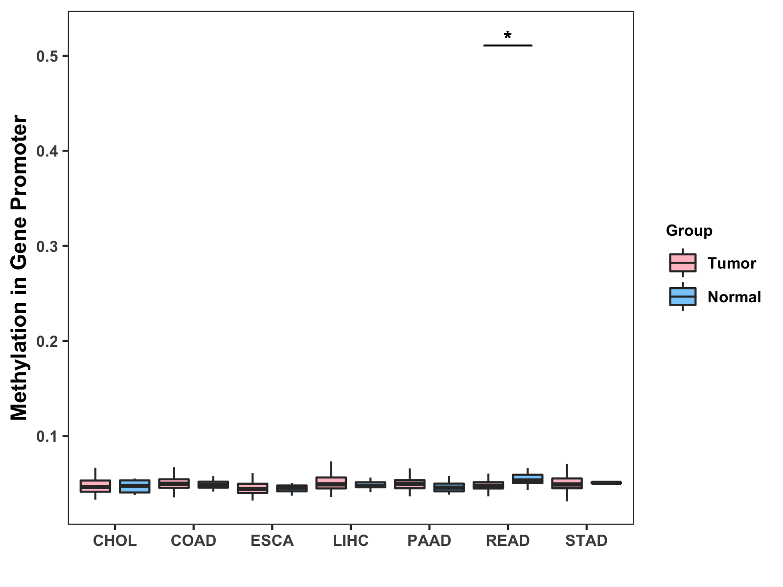 Methylation Level in Colon Cancer MODERATE Methylation Level in Rectum Cancer MODERATE