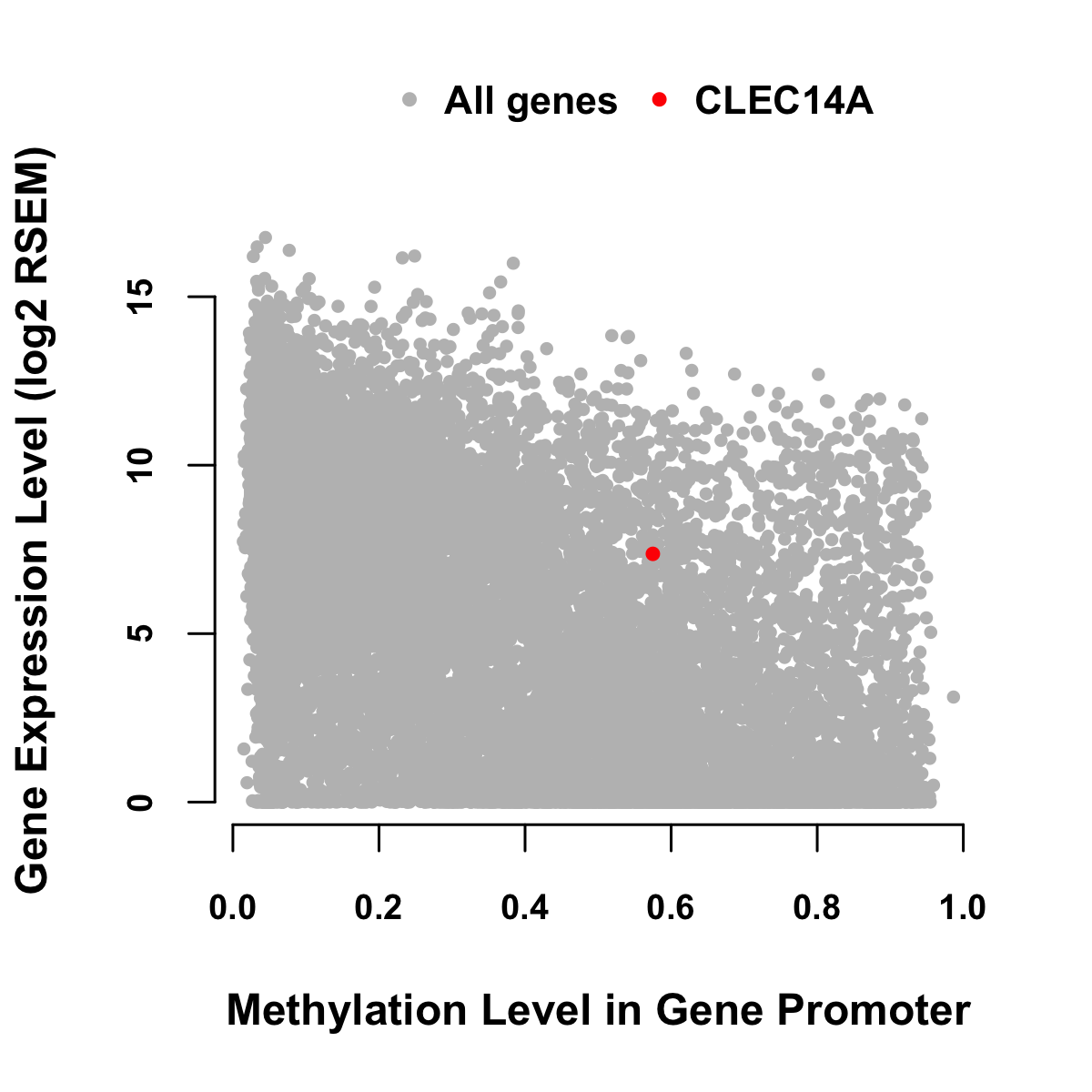 Expression-Methylation Scatter Plot in Colon Cancer Expression-Methylation Scatter Plot in Rectum Cancer