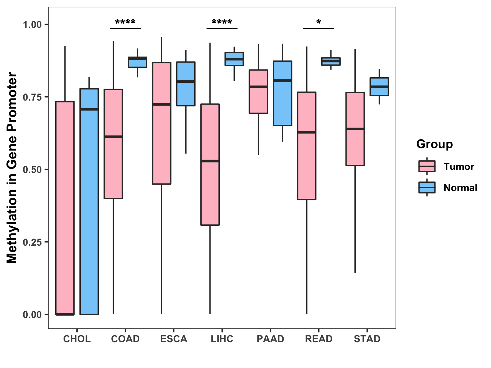 Methylation Level in Colon Cancer LOW Methylation Level in Rectum Cancer LOW