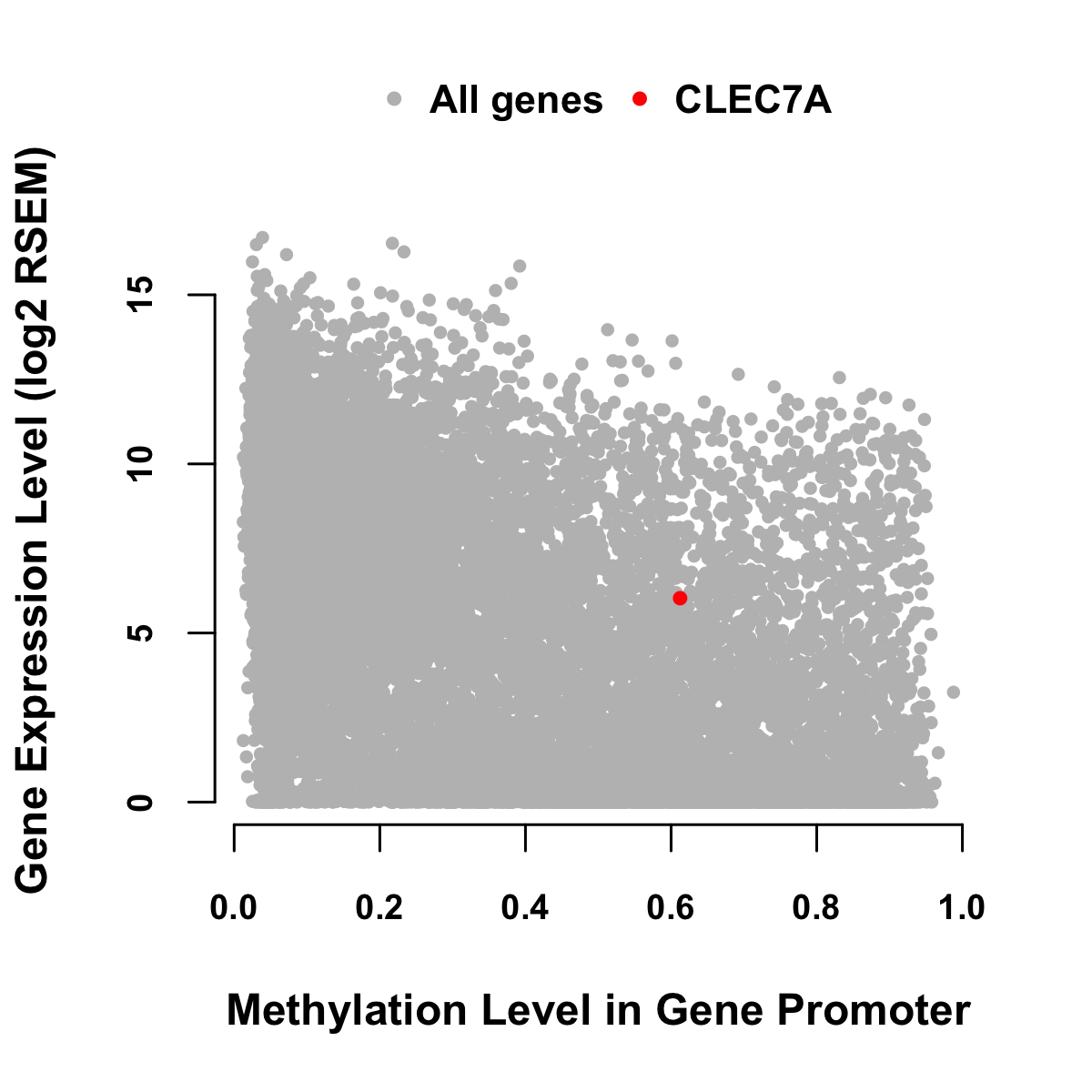 Expression-Methylation Scatter Plot in Colon Cancer Expression-Methylation Scatter Plot in Rectum Cancer