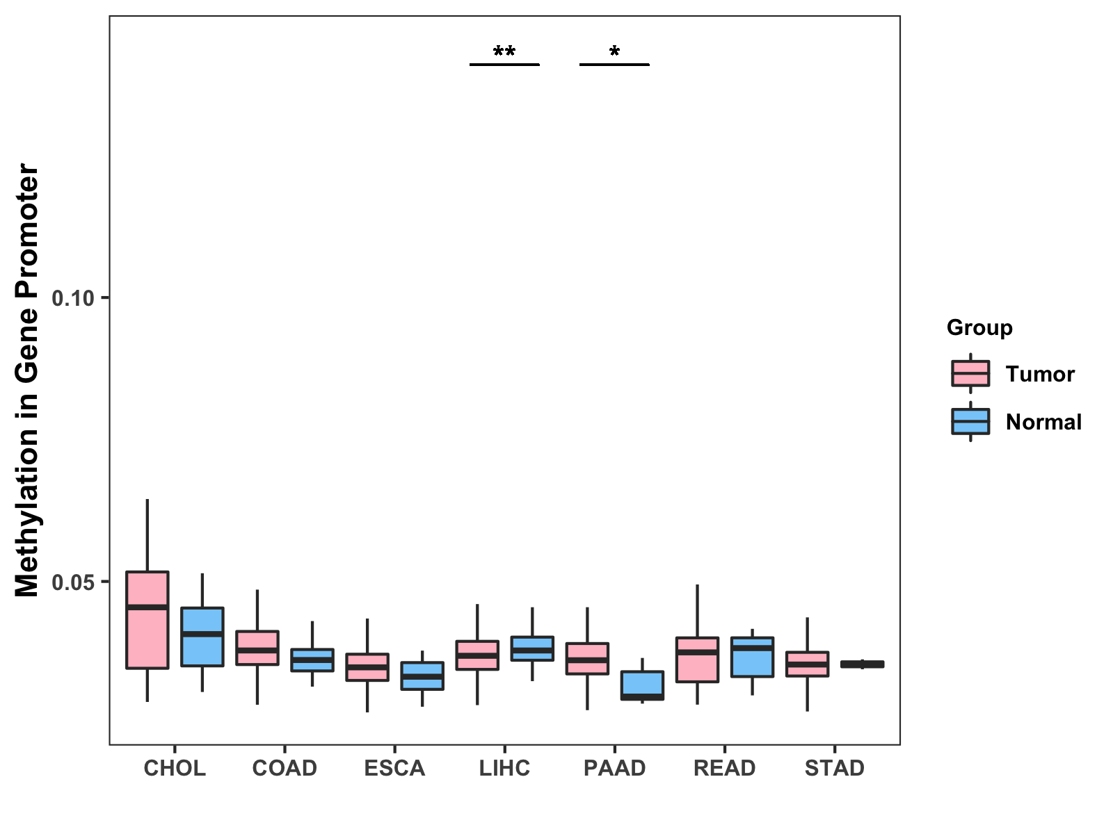 Methylation Level in Colon Cancer MODERATE Methylation Level in Rectum Cancer MODERATE