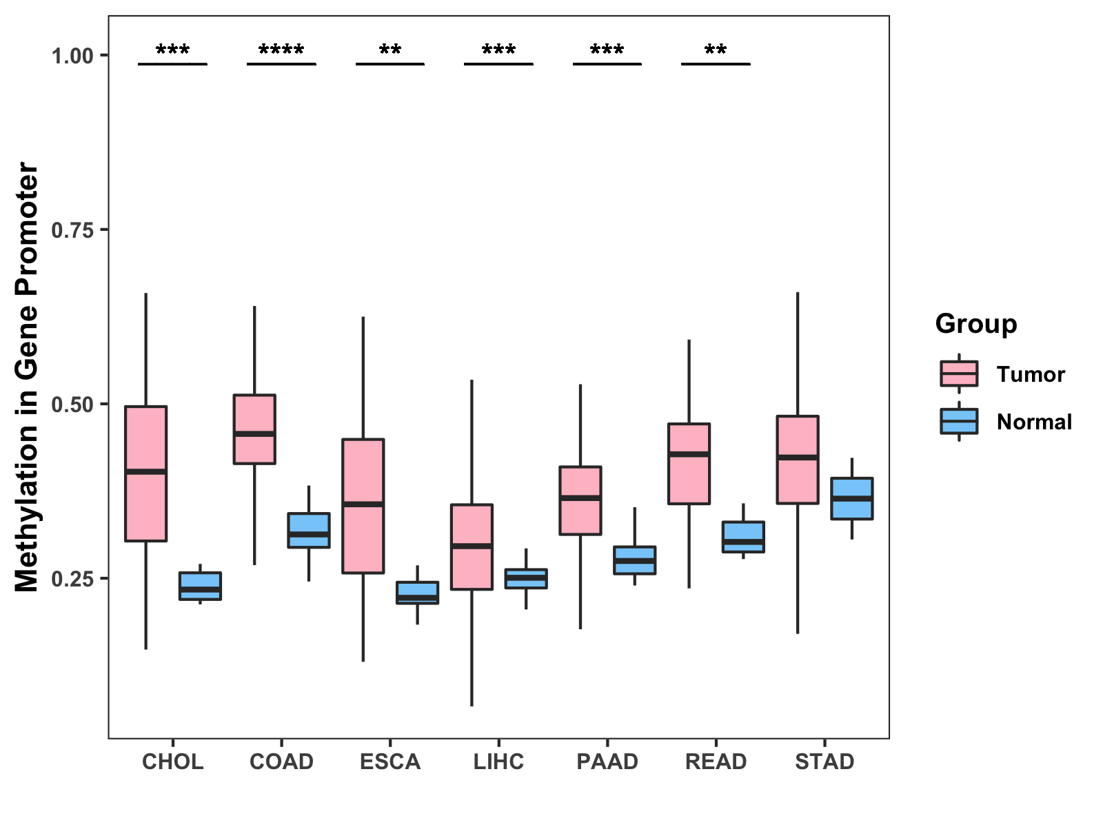 Methylation Level in Colon Cancer HIGH Methylation Level in Rectum Cancer HIGH
