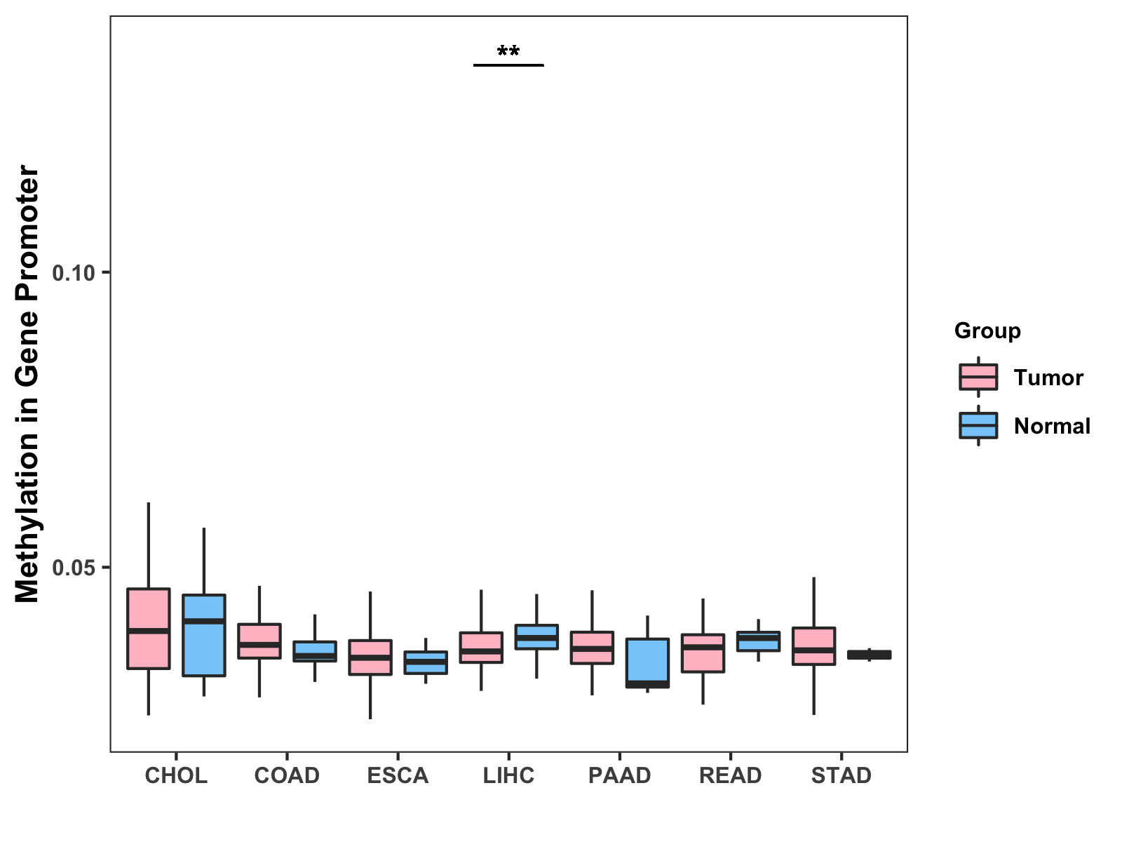 Boxplot of All Gastrointestinal Cancer ( * : 0.01-0.05 , ** : 0.005-0.01 , *** : 0.0001-0.005 , **** : < 0.0001 ) |