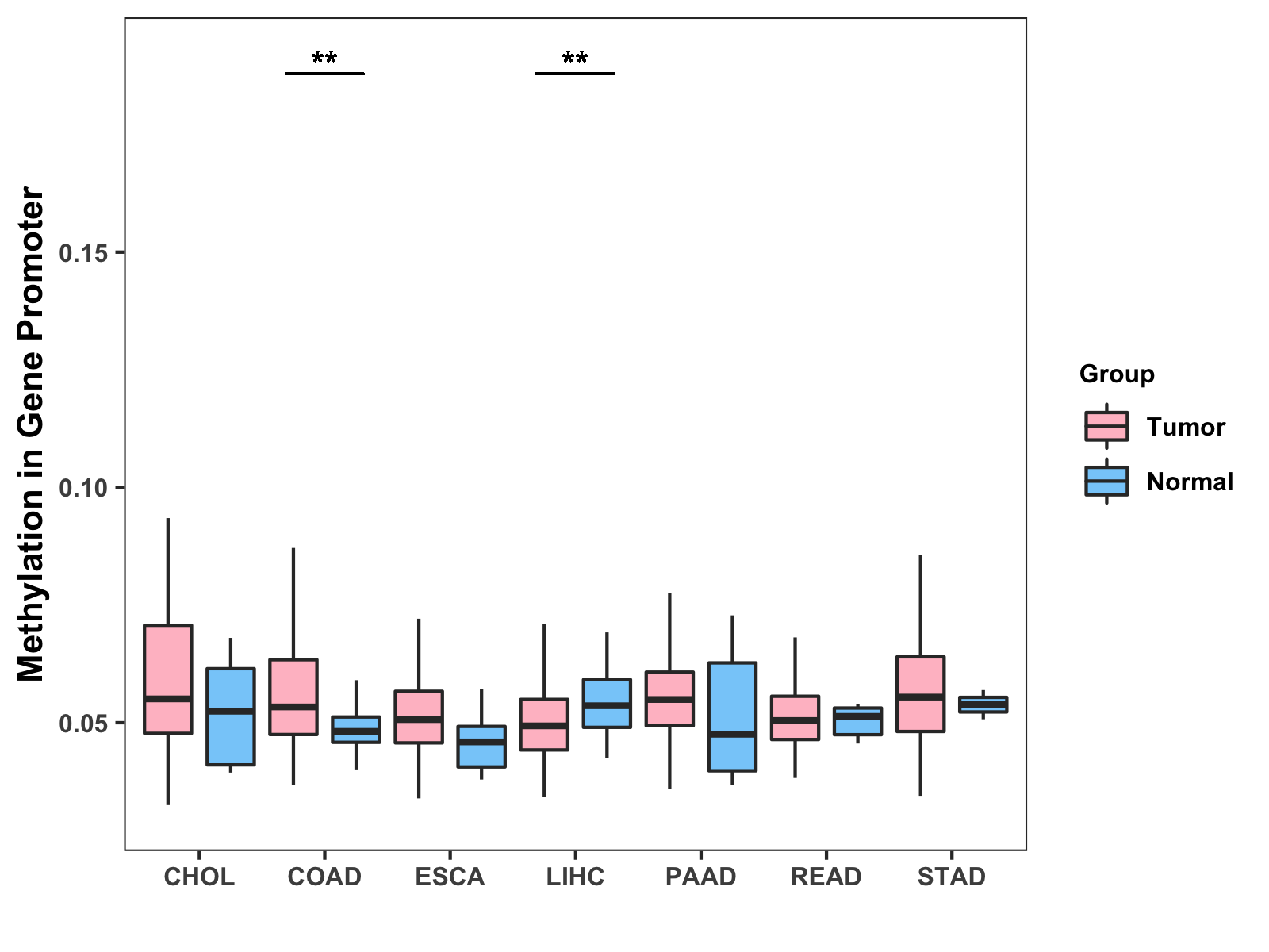 Boxplot of All Gastrointestinal Cancer ( * : 0.01-0.05 , ** : 0.005-0.01 , *** : 0.0001-0.005 , **** : < 0.0001 ) |