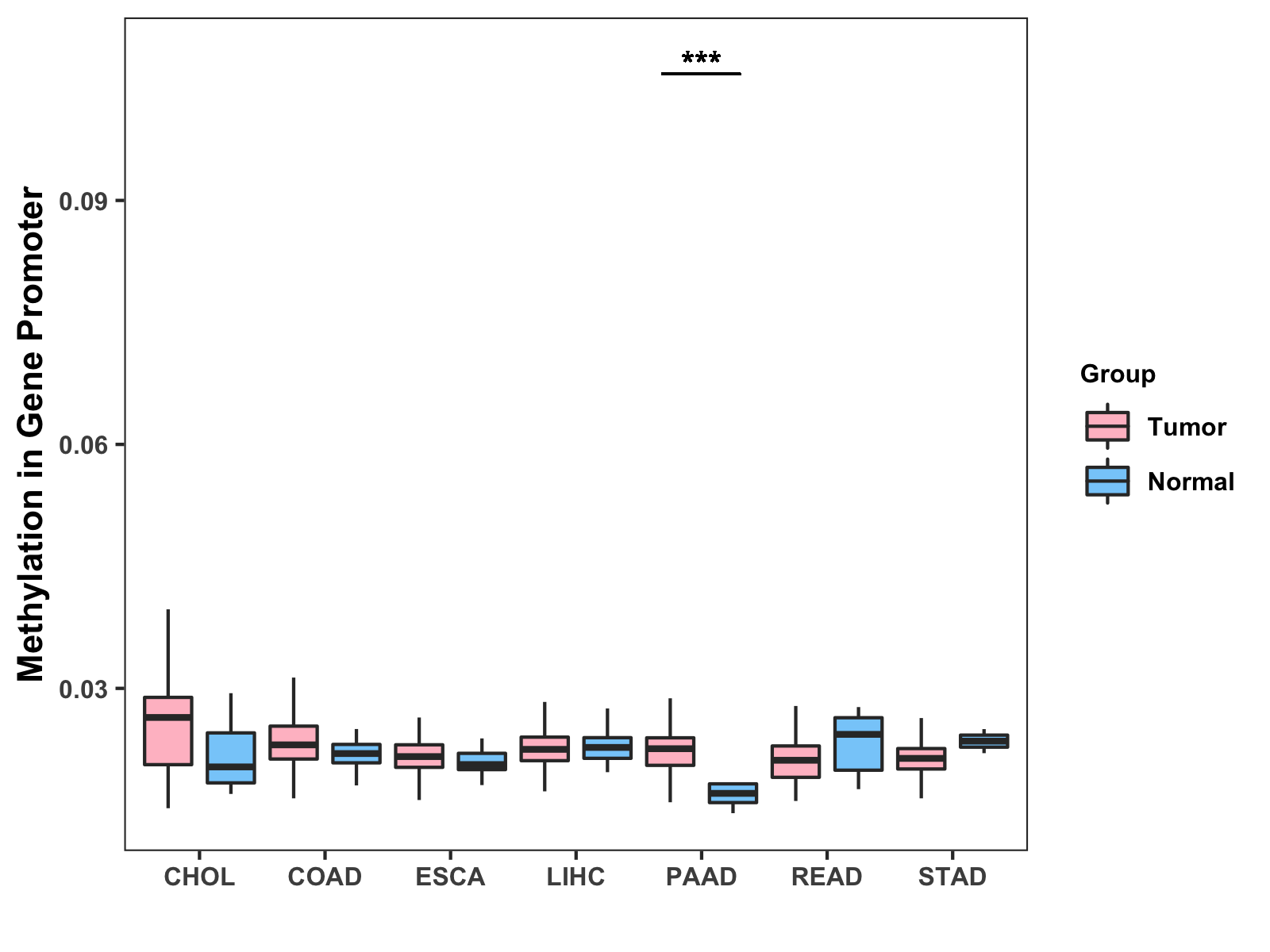 Boxplot of All Gastrointestinal Cancer ( * : 0.01-0.05 , ** : 0.005-0.01 , *** : 0.0001-0.005 , **** : < 0.0001 ) |