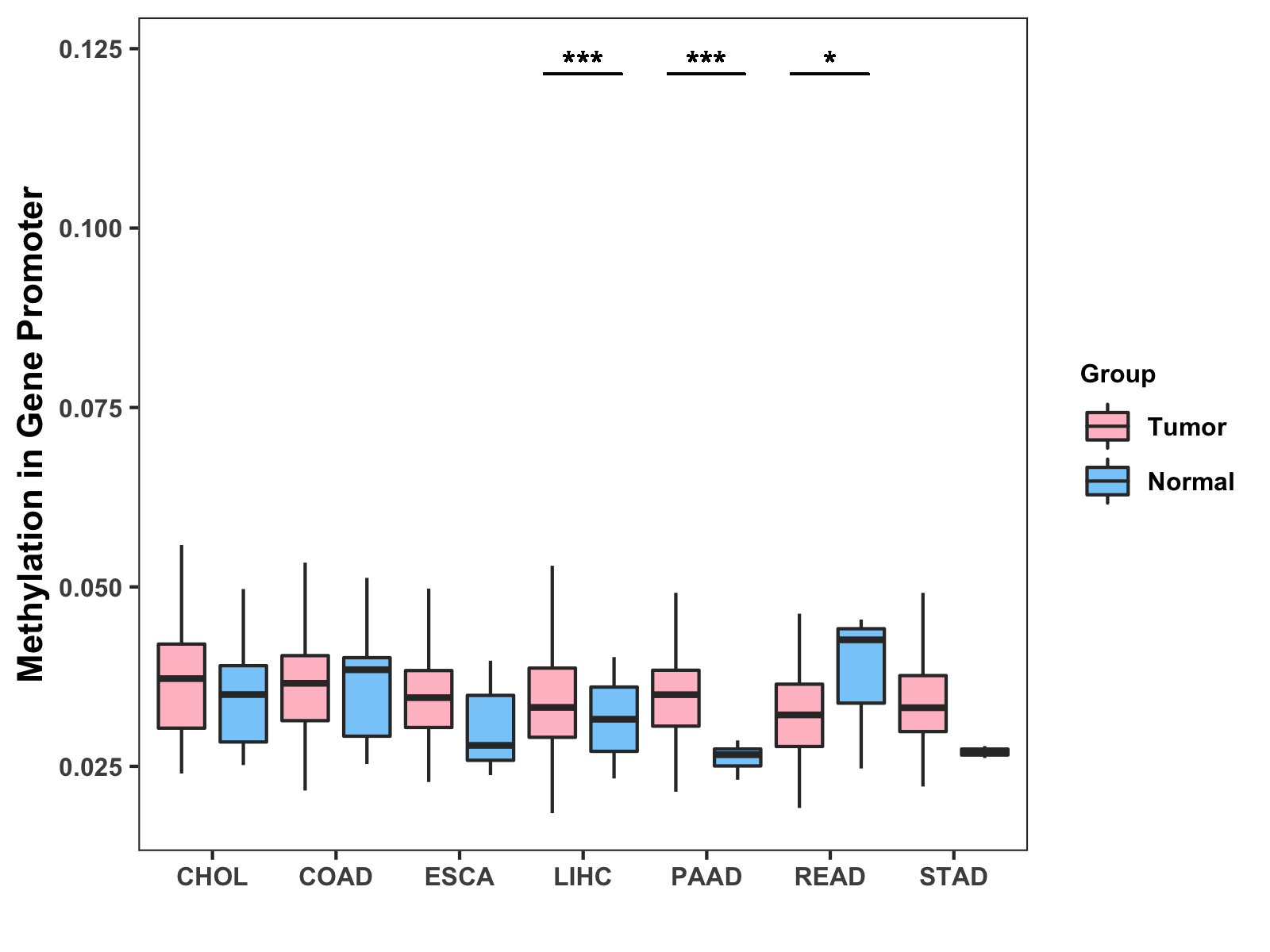Methylation Level in Colon Cancer MODERATE Methylation Level in Rectum Cancer MODERATE