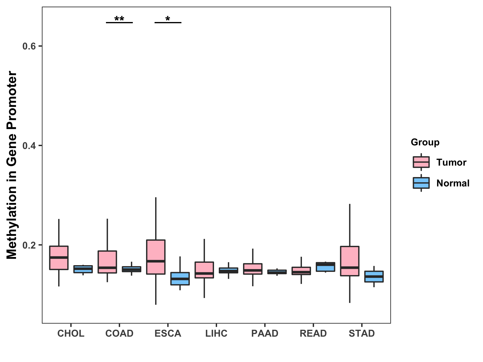 Methylation Level in Colon Cancer MODERATE Methylation Level in Rectum Cancer MODERATE