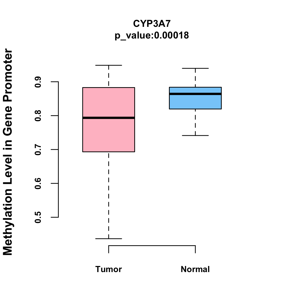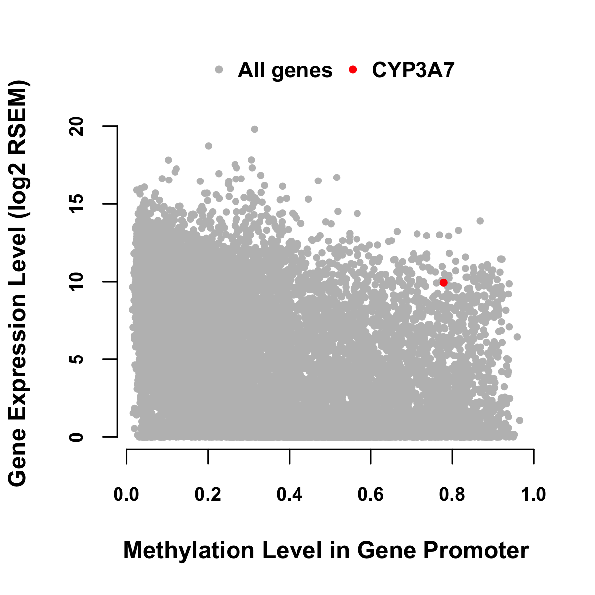 | Box Plot in Liver Cancer | Expression-Methylation Scatter Plot in Liver Cancer |