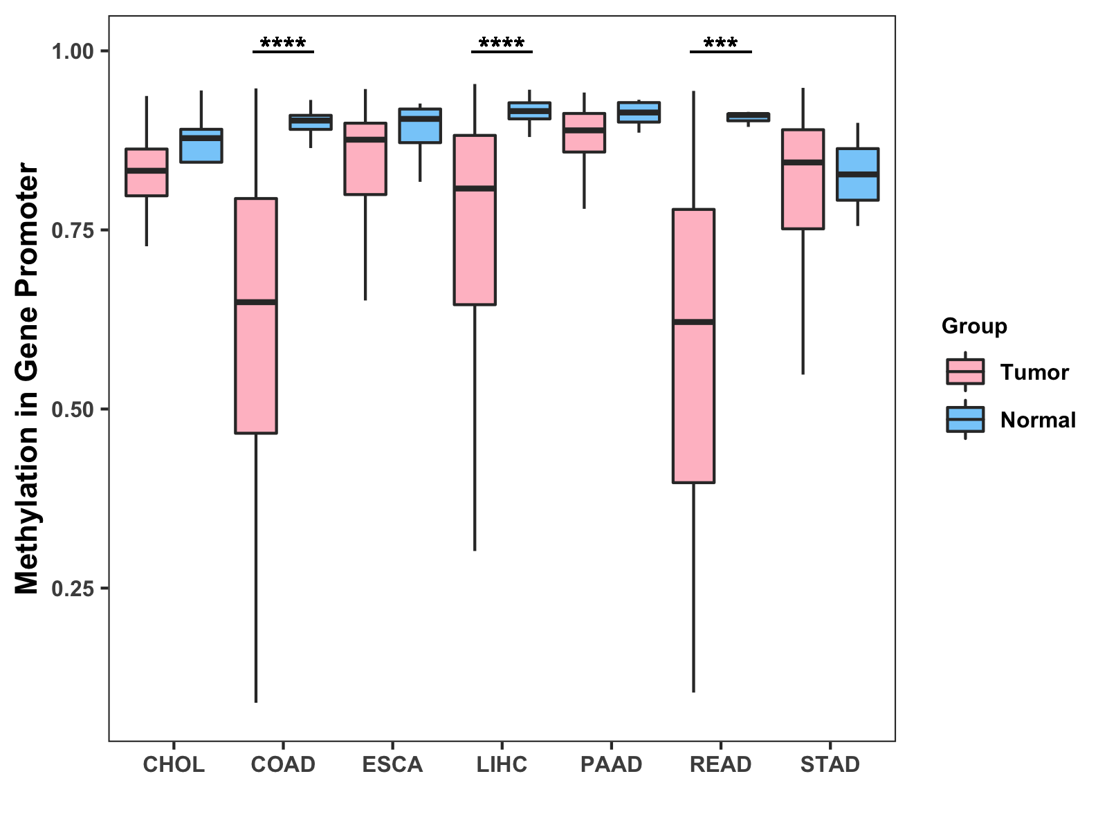 Methylation Level in Colon Cancer LOW Methylation Level in Rectum Cancer LOW
