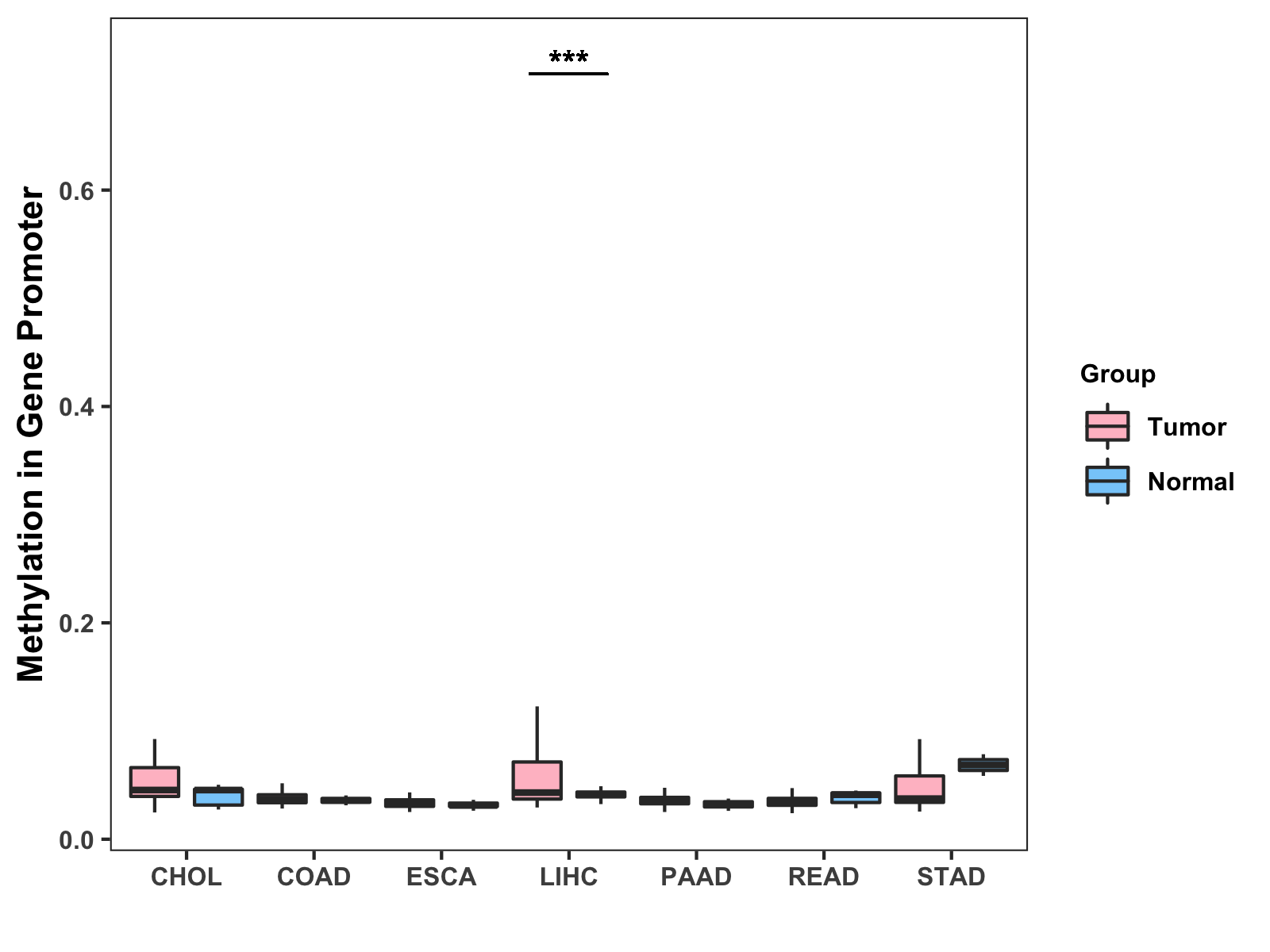 Methylation Level in Colon Cancer MODERATE Methylation Level in Rectum Cancer MODERATE