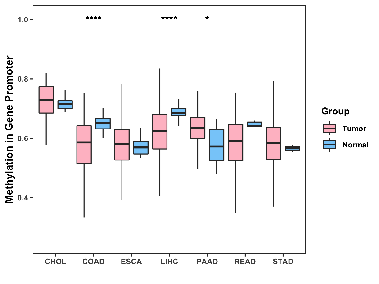 Methylation Level in Colon Cancer MODERATE Methylation Level in Rectum Cancer MODERATE