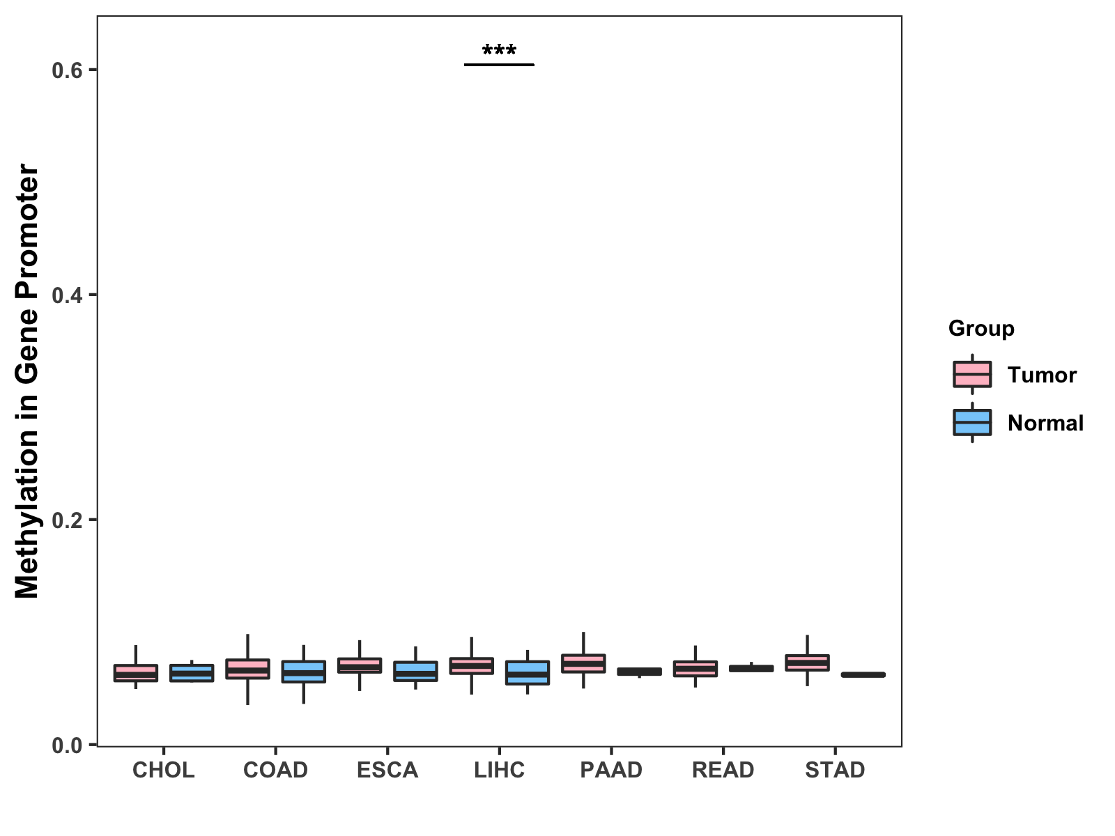 Methylation Level in Colon Cancer MODERATE Methylation Level in Rectum Cancer MODERATE