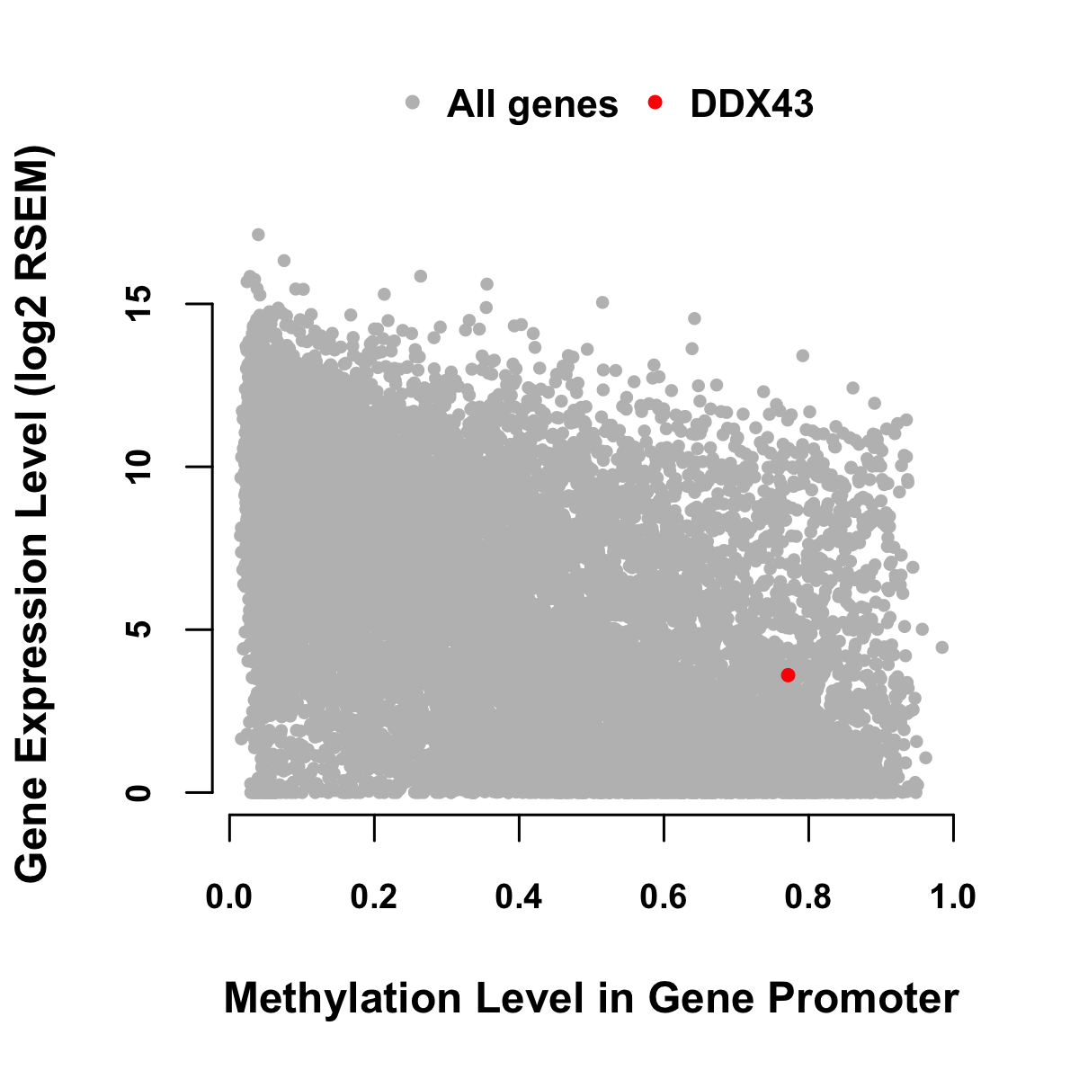| Box Plot in Stomach Cancer | Expression-Methylation Scatter Plot in Stomach Cancer |