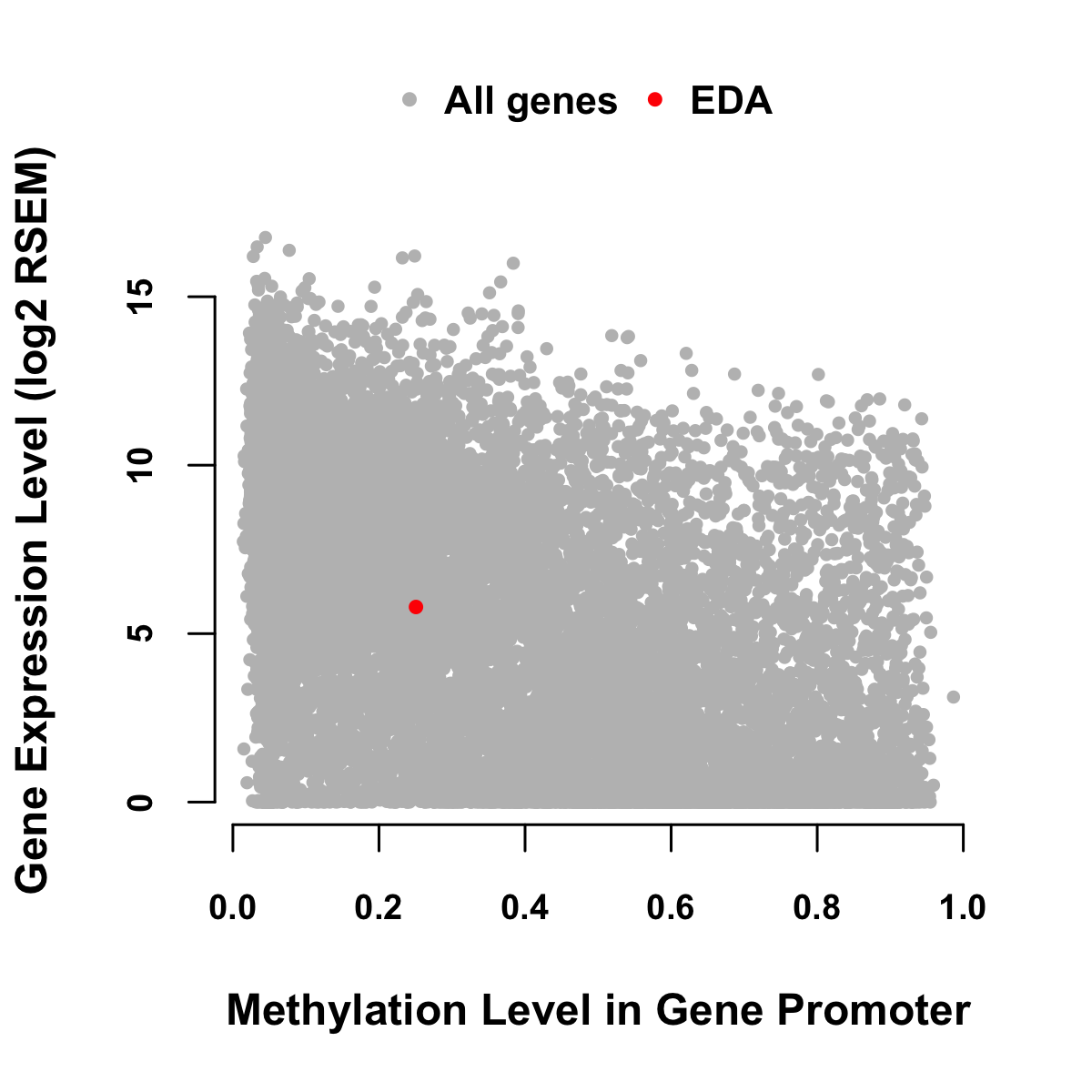 Expression-Methylation Scatter Plot in Colon Cancer Expression-Methylation Scatter Plot in Rectum Cancer