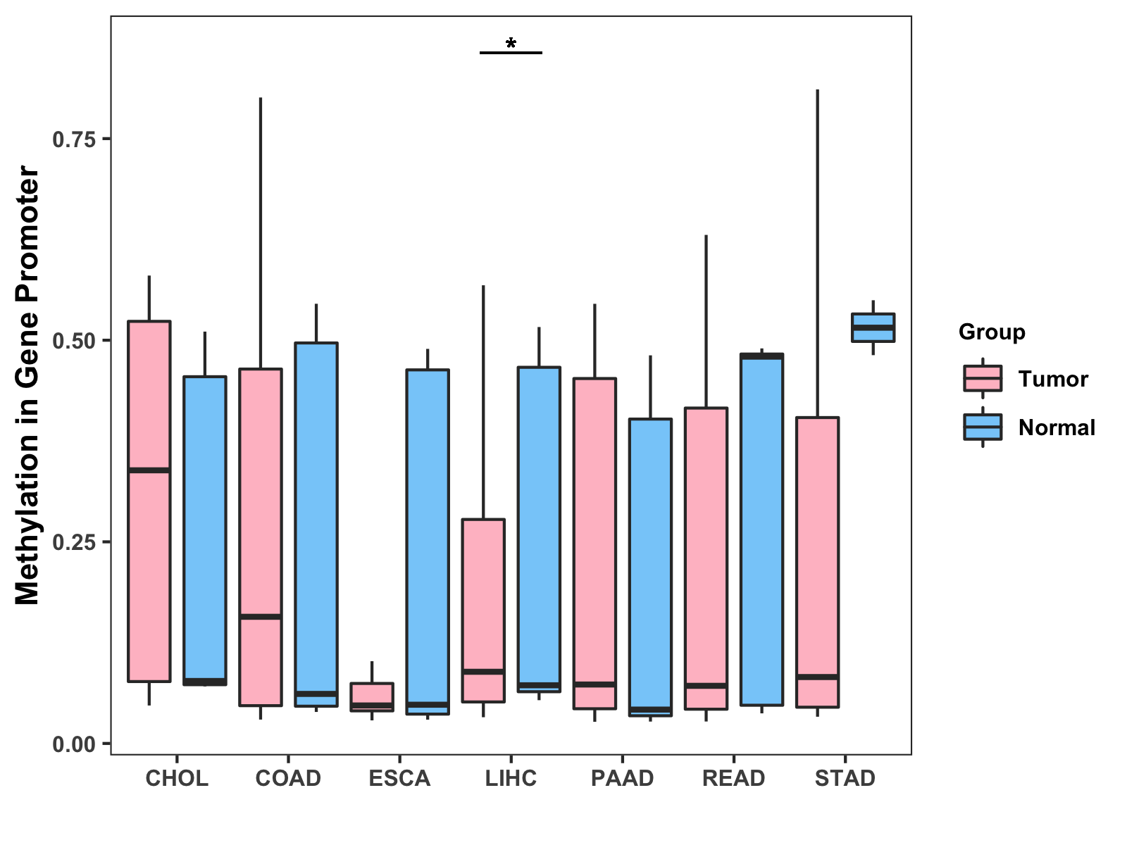 Methylation Level in Colon Cancer MODERATE Methylation Level in Rectum Cancer MODERATE