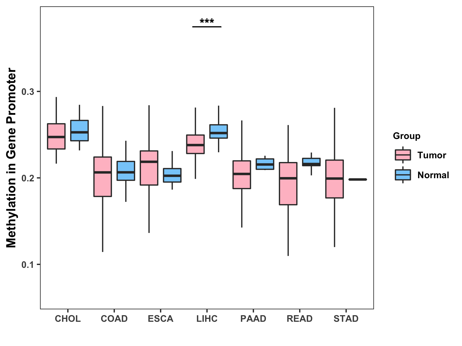 Boxplot of All Gastrointestinal Cancer ( * : 0.01-0.05 , ** : 0.005-0.01 , *** : 0.0001-0.005 , **** : < 0.0001 ) |