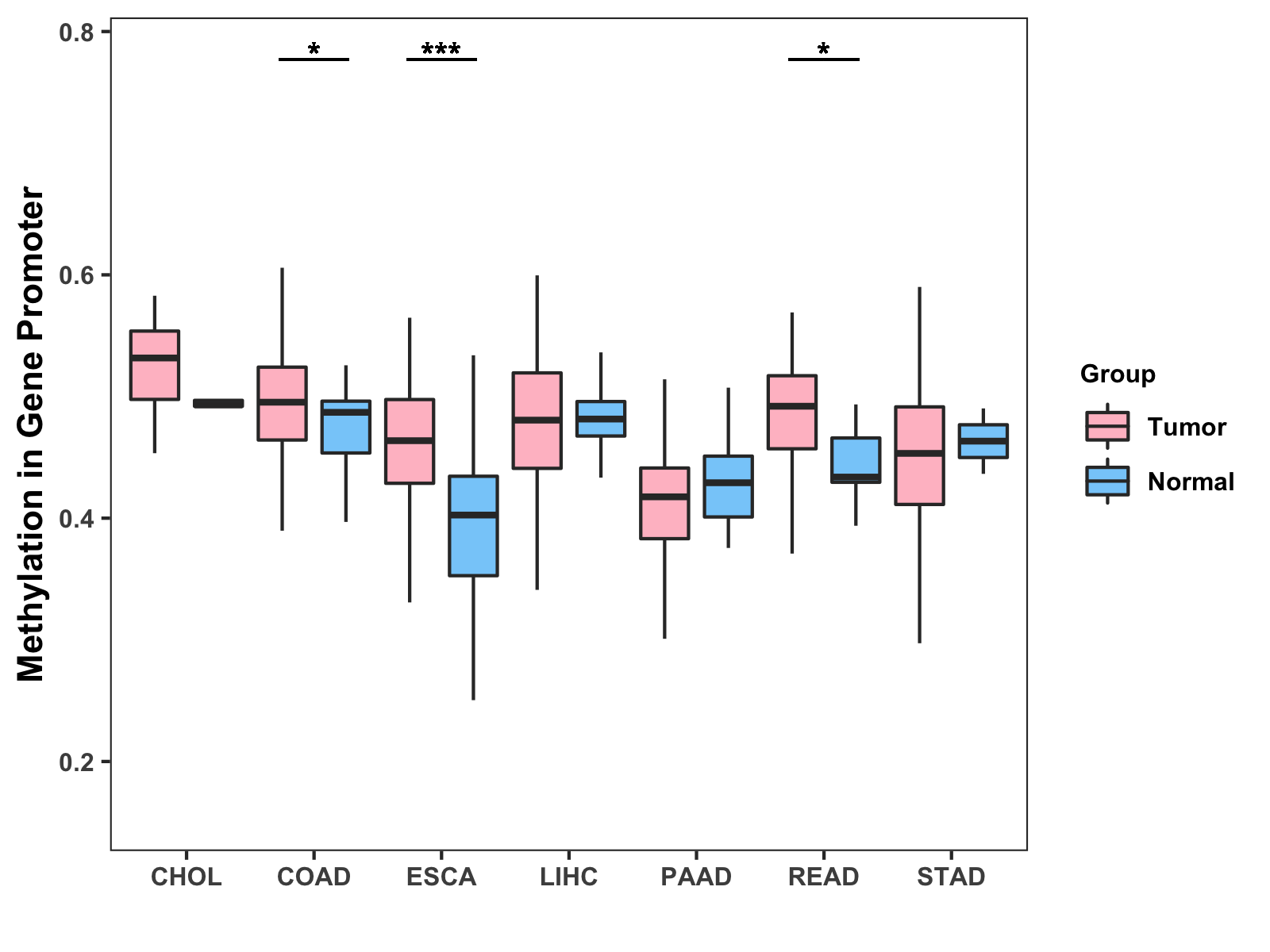Methylation Level in Colon Cancer MODERATE Methylation Level in Rectum Cancer MODERATE