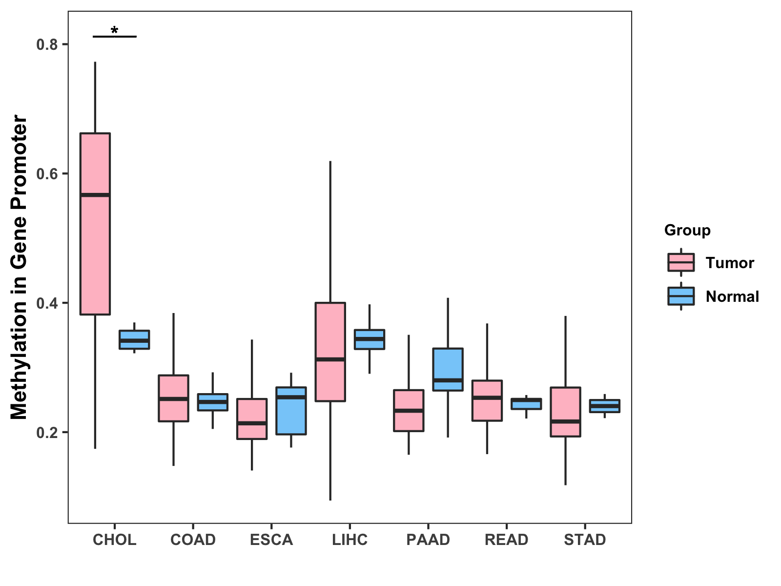 Boxplot of All Gastrointestinal Cancer ( * : 0.01-0.05 , ** : 0.005-0.01 , *** : 0.0001-0.005 , **** : < 0.0001 ) |