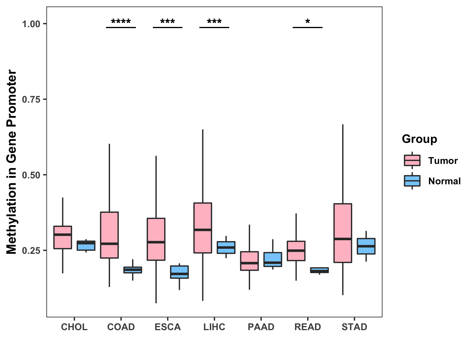 Methylation Level in Colon Cancer MODERATE Methylation Level in Rectum Cancer MODERATE