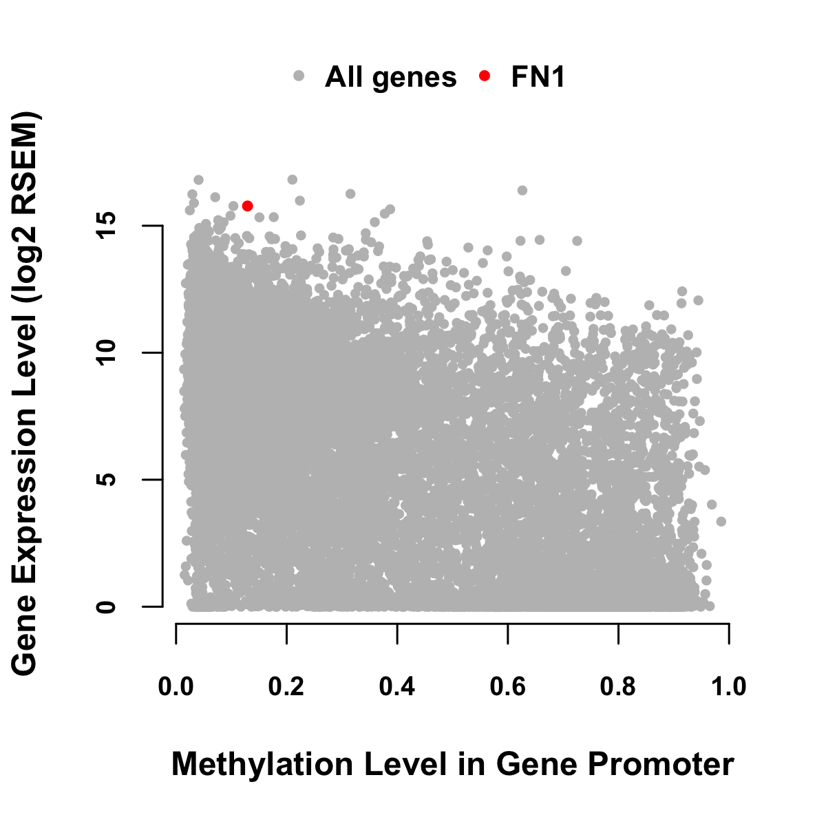 | Box Plot in Pancreatic Cancer | Expression-Methylation Scatter Plot in Pancreatic Cancer |