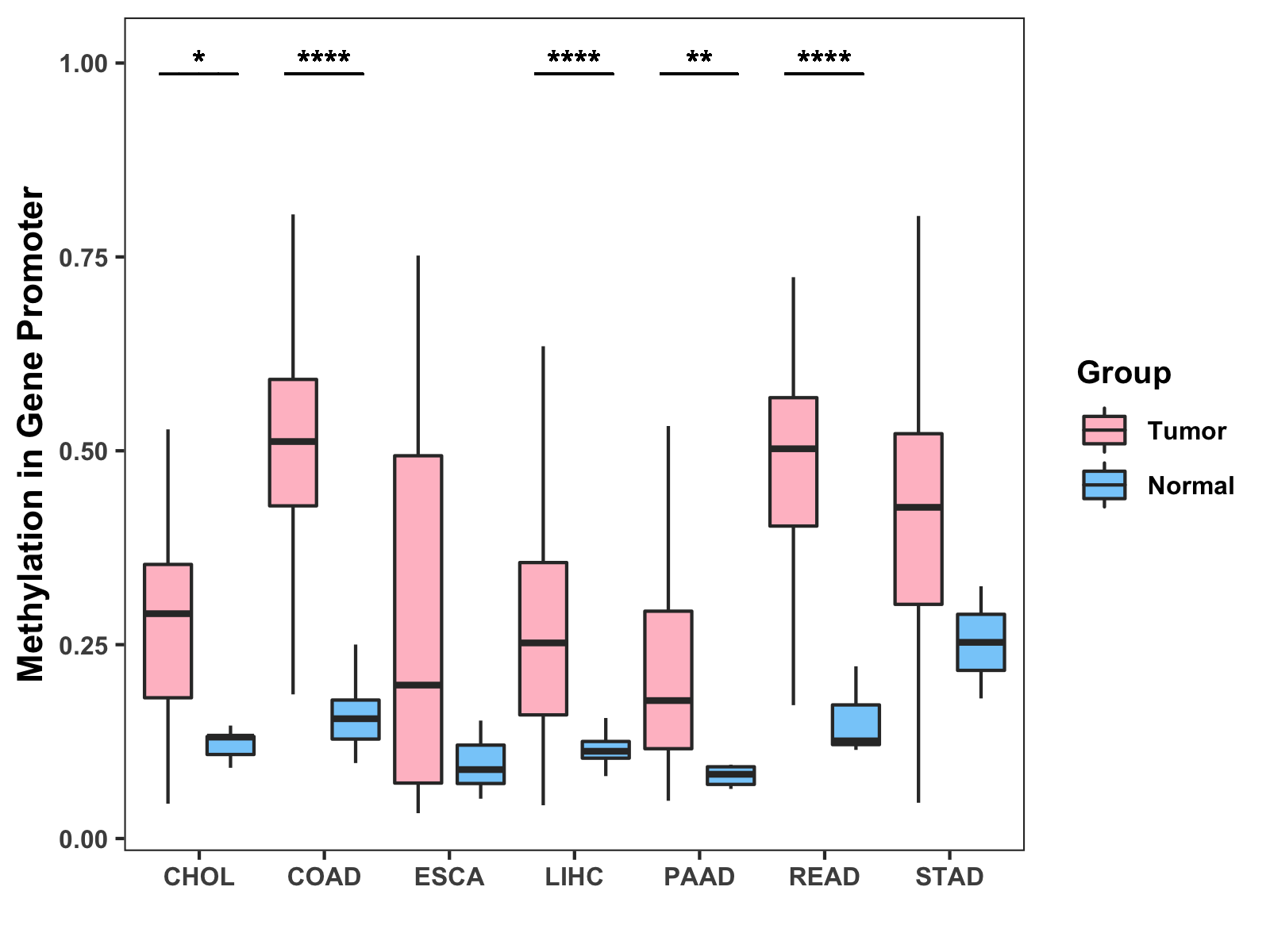 Methylation Level in Colon Cancer HIGH Methylation Level in Rectum Cancer HIGH