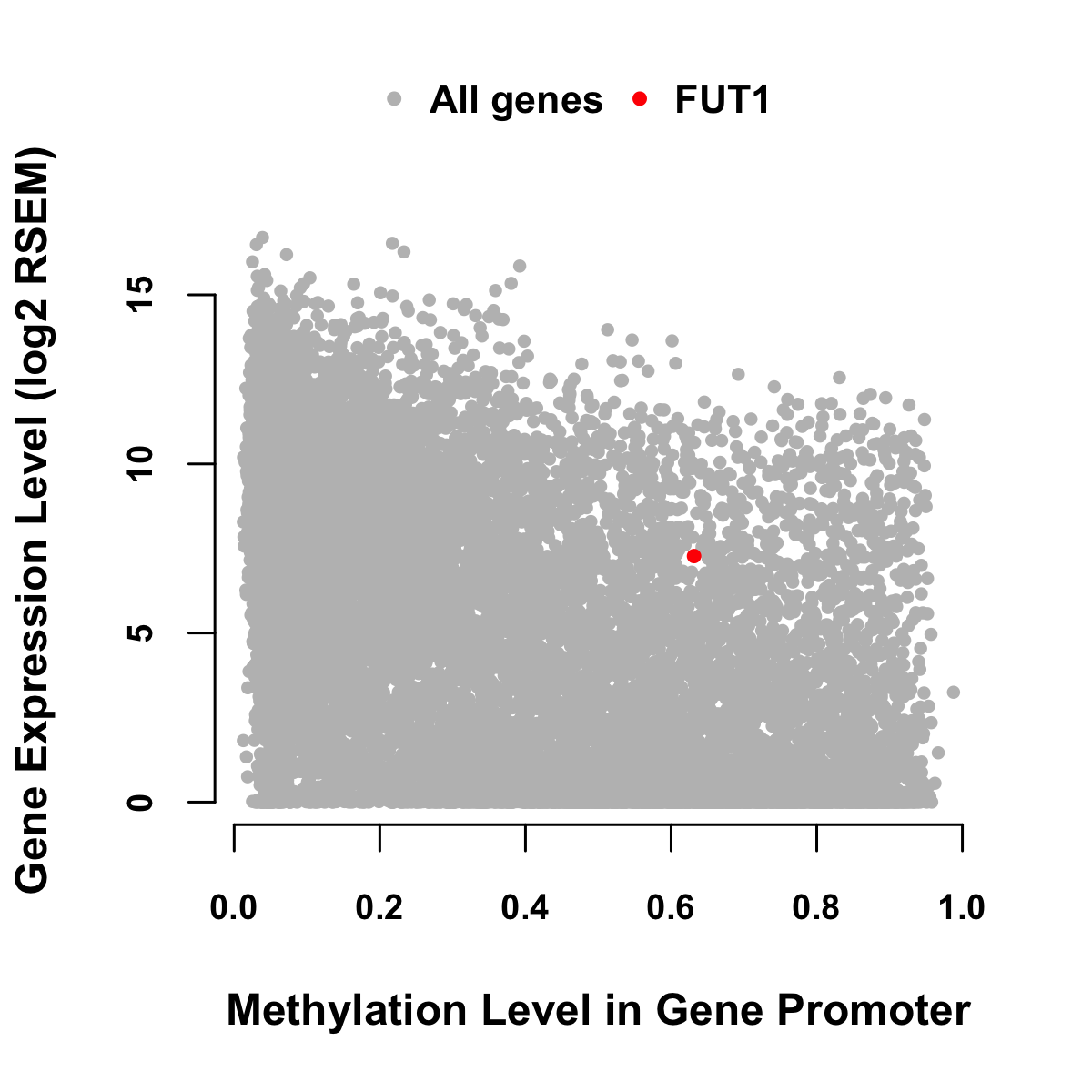 Expression-Methylation Scatter Plot in Colon Cancer Expression-Methylation Scatter Plot in Rectum Cancer