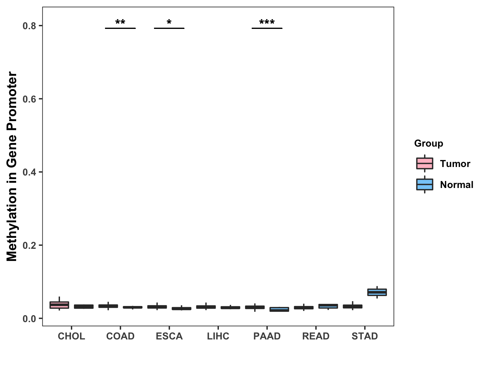 Methylation Level in Colon Cancer MODERATE Methylation Level in Rectum Cancer MODERATE