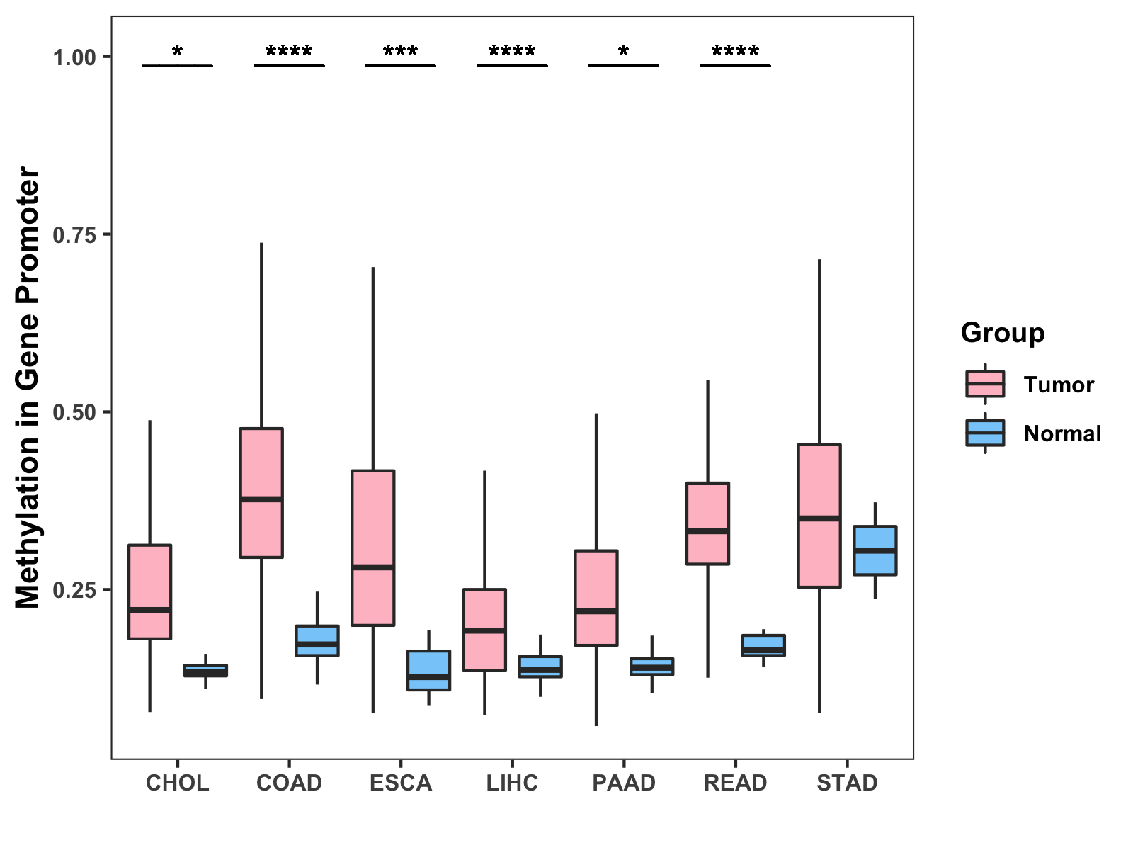 Methylation Level in Colon Cancer HIGH Methylation Level in Rectum Cancer HIGH