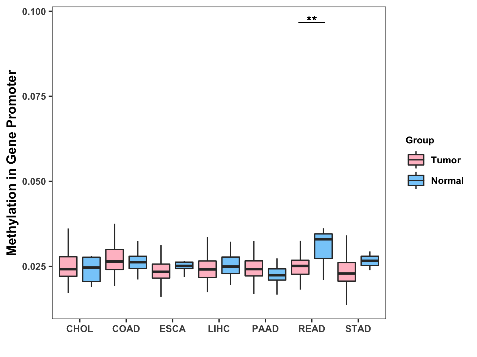 Boxplot of All Gastrointestinal Cancer ( * : 0.01-0.05 , ** : 0.005-0.01 , *** : 0.0001-0.005 , **** : < 0.0001 ) |