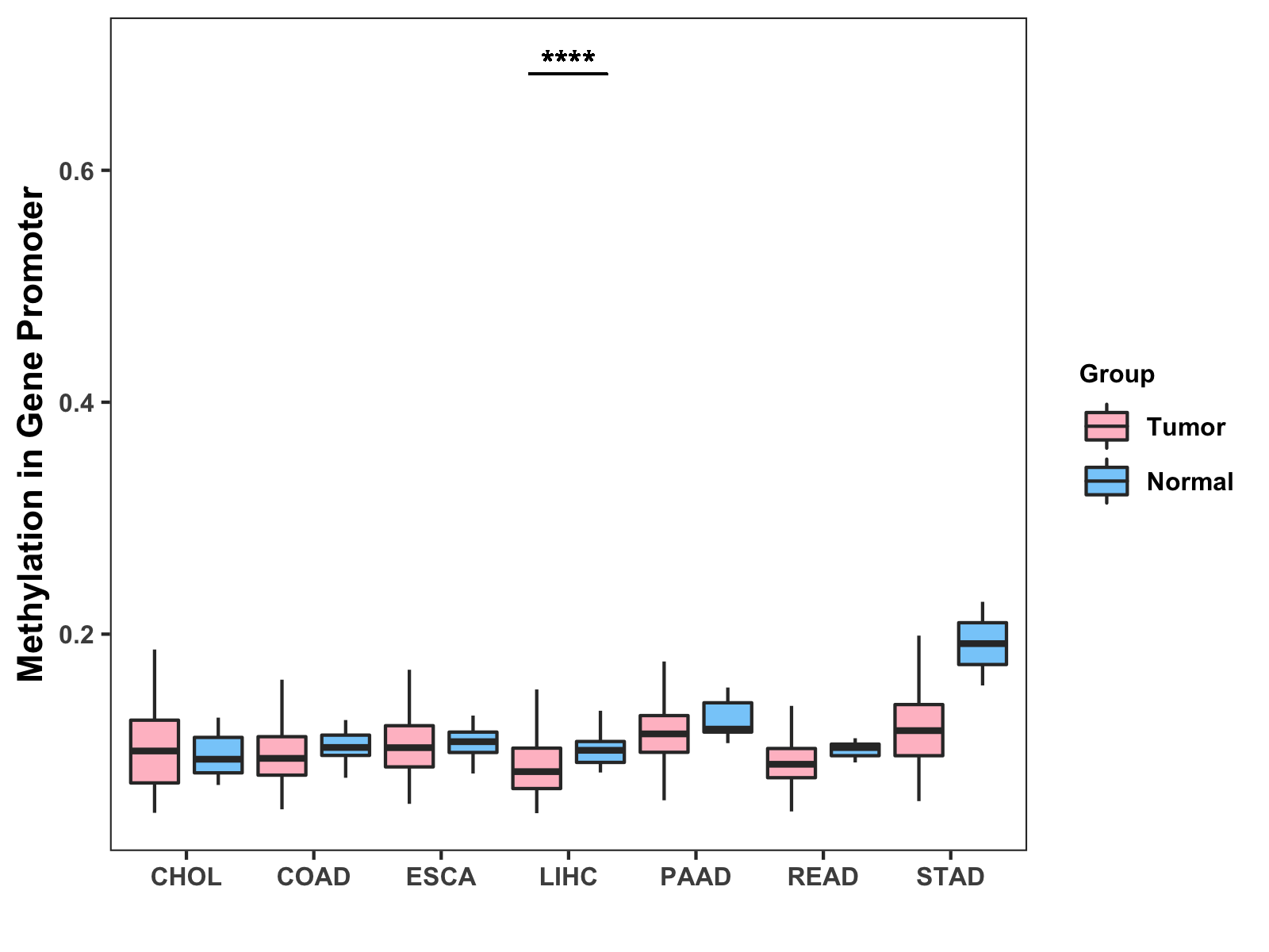 Boxplot of All Gastrointestinal Cancer ( * : 0.01-0.05 , ** : 0.005-0.01 , *** : 0.0001-0.005 , **** : < 0.0001 ) |