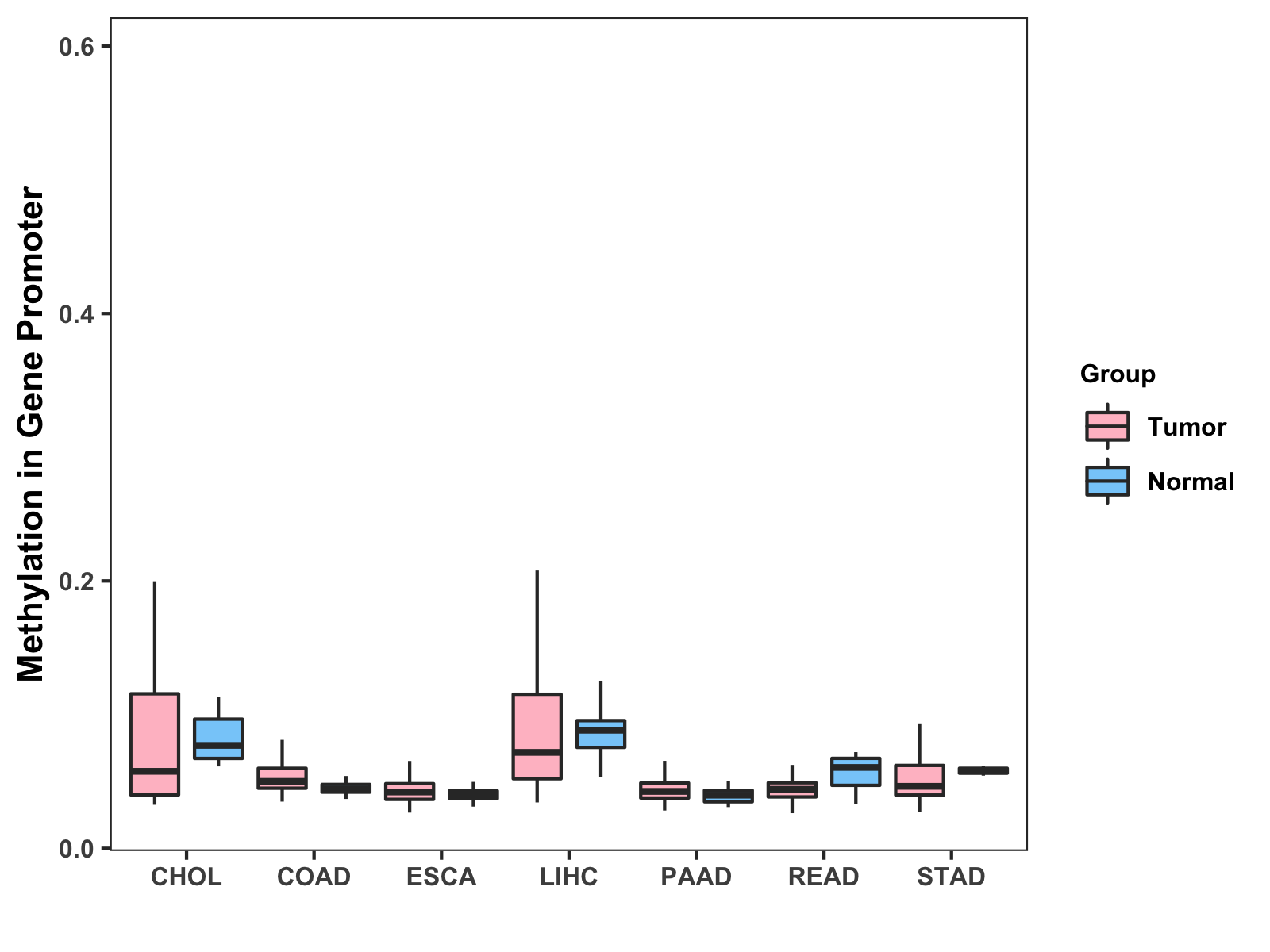Methylation Level in Colon Cancer MODERATE Methylation Level in Rectum Cancer MODERATE