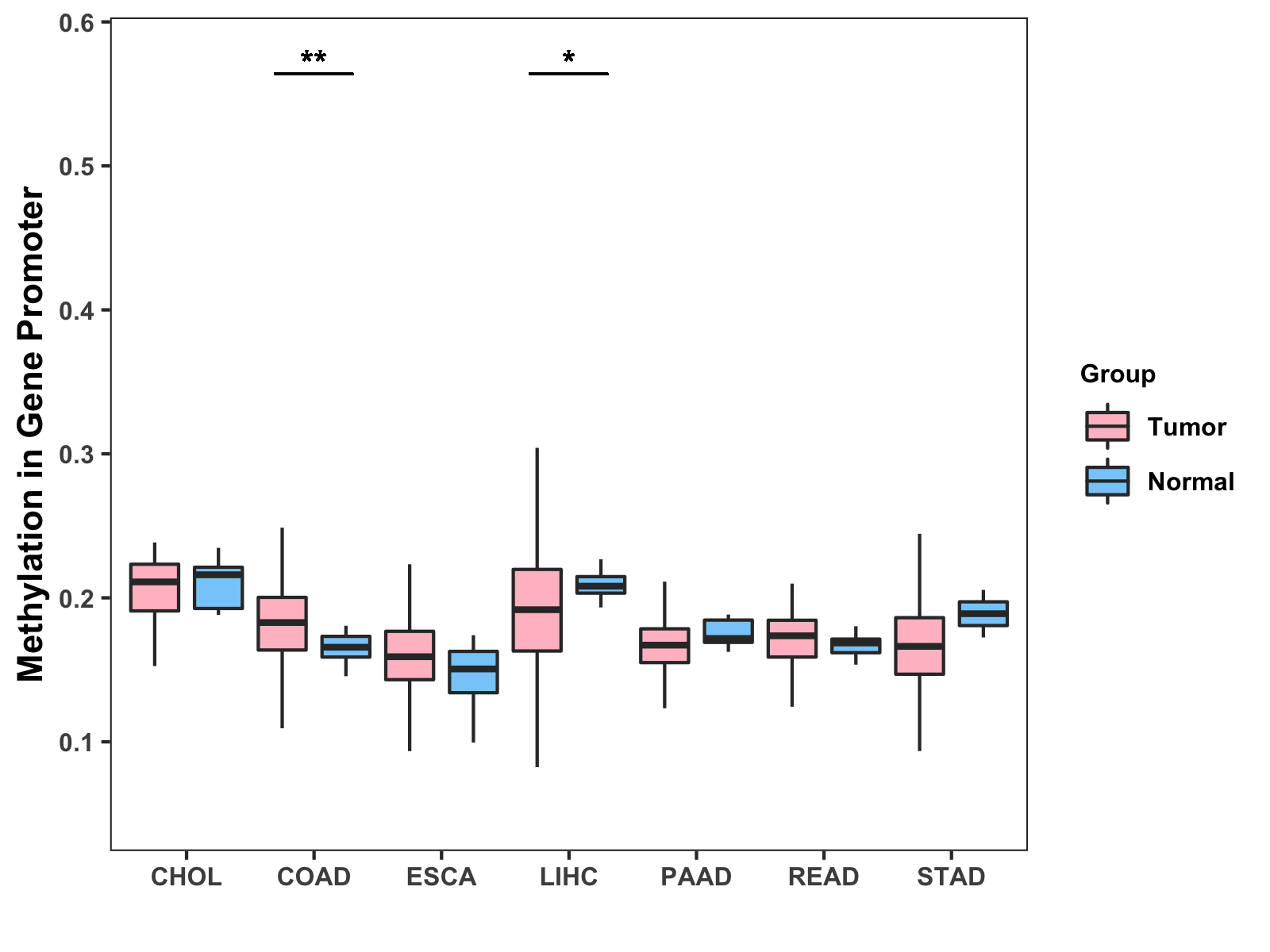 Methylation Level in Colon Cancer MODERATE Methylation Level in Rectum Cancer MODERATE
