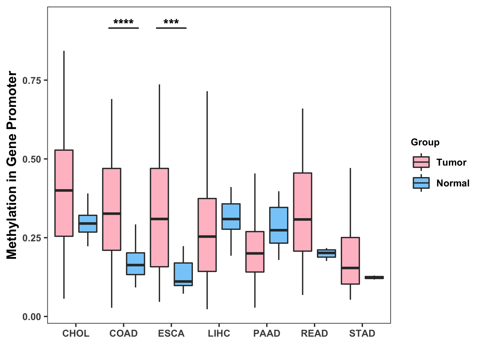 Methylation Level in Colon Cancer HIGH Methylation Level in Rectum Cancer MODERATE