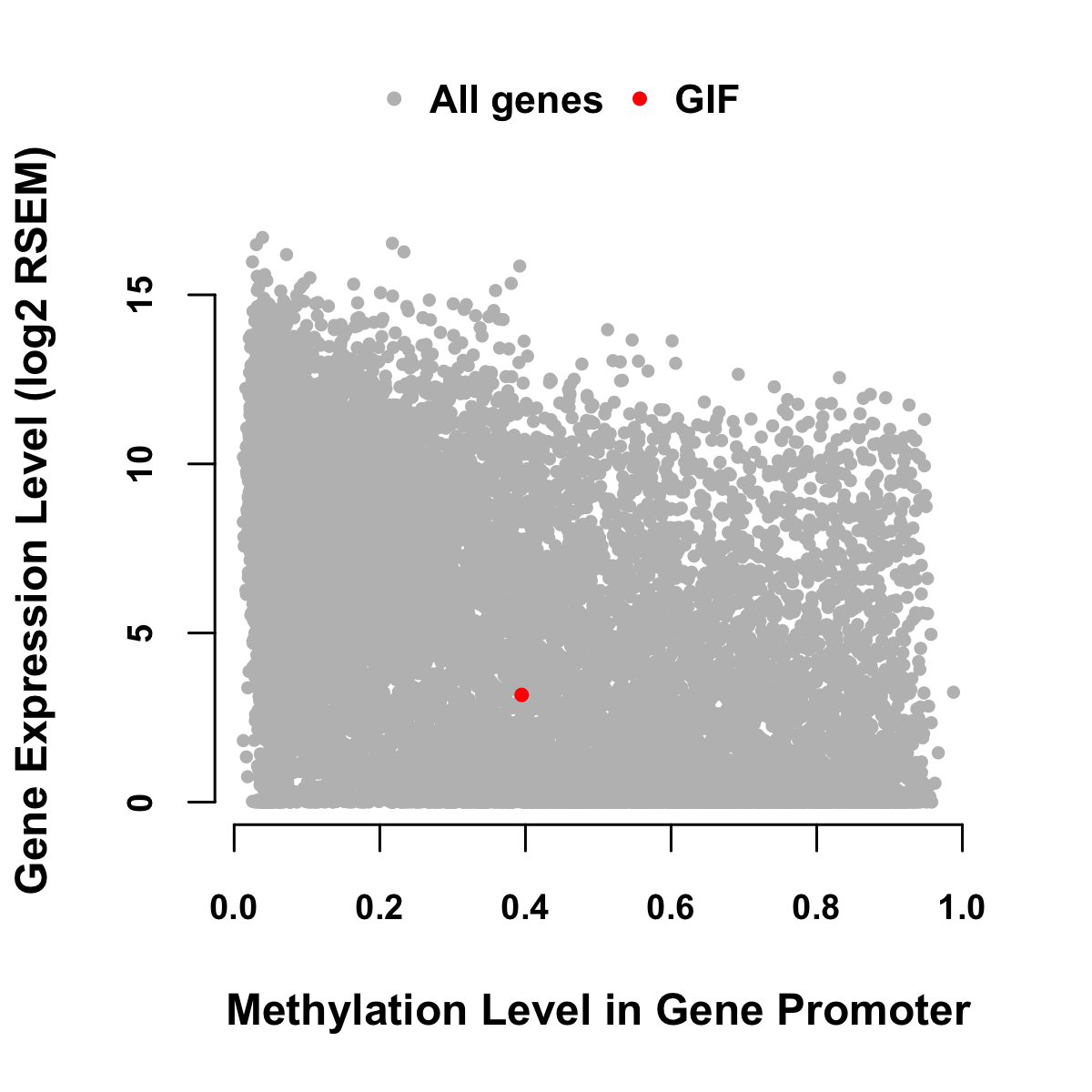 Expression-Methylation Scatter Plot in Colon Cancer Expression-Methylation Scatter Plot in Rectum Cancer