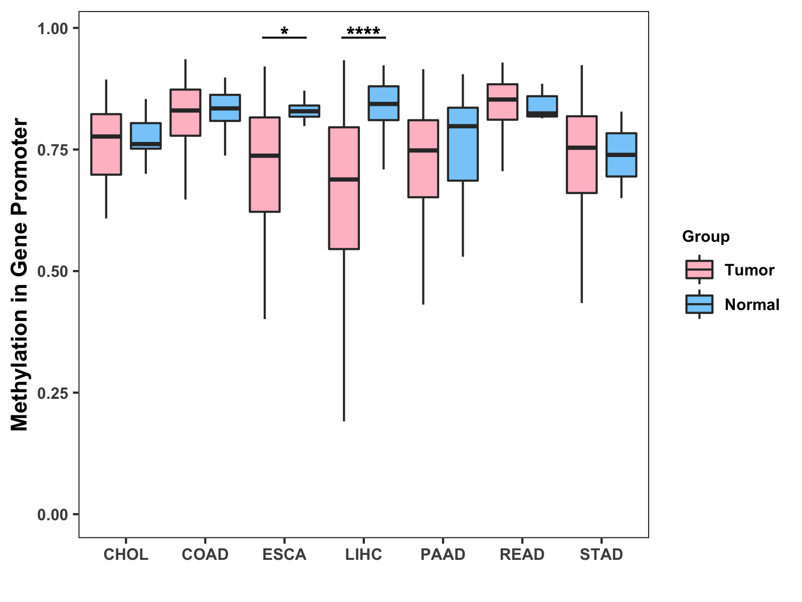 Methylation Level in Colon Cancer MODERATE Methylation Level in Rectum Cancer MODERATE
