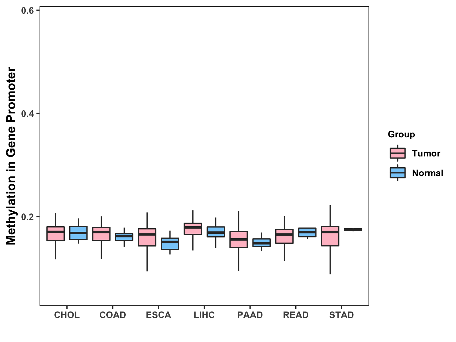 Methylation Level in Colon Cancer MODERATE Methylation Level in Rectum Cancer MODERATE