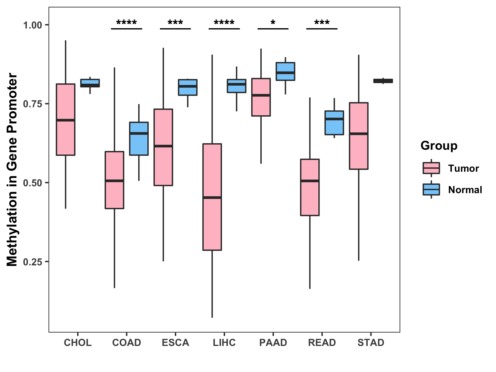 Methylation Level in Colon Cancer LOW Methylation Level in Rectum Cancer LOW
