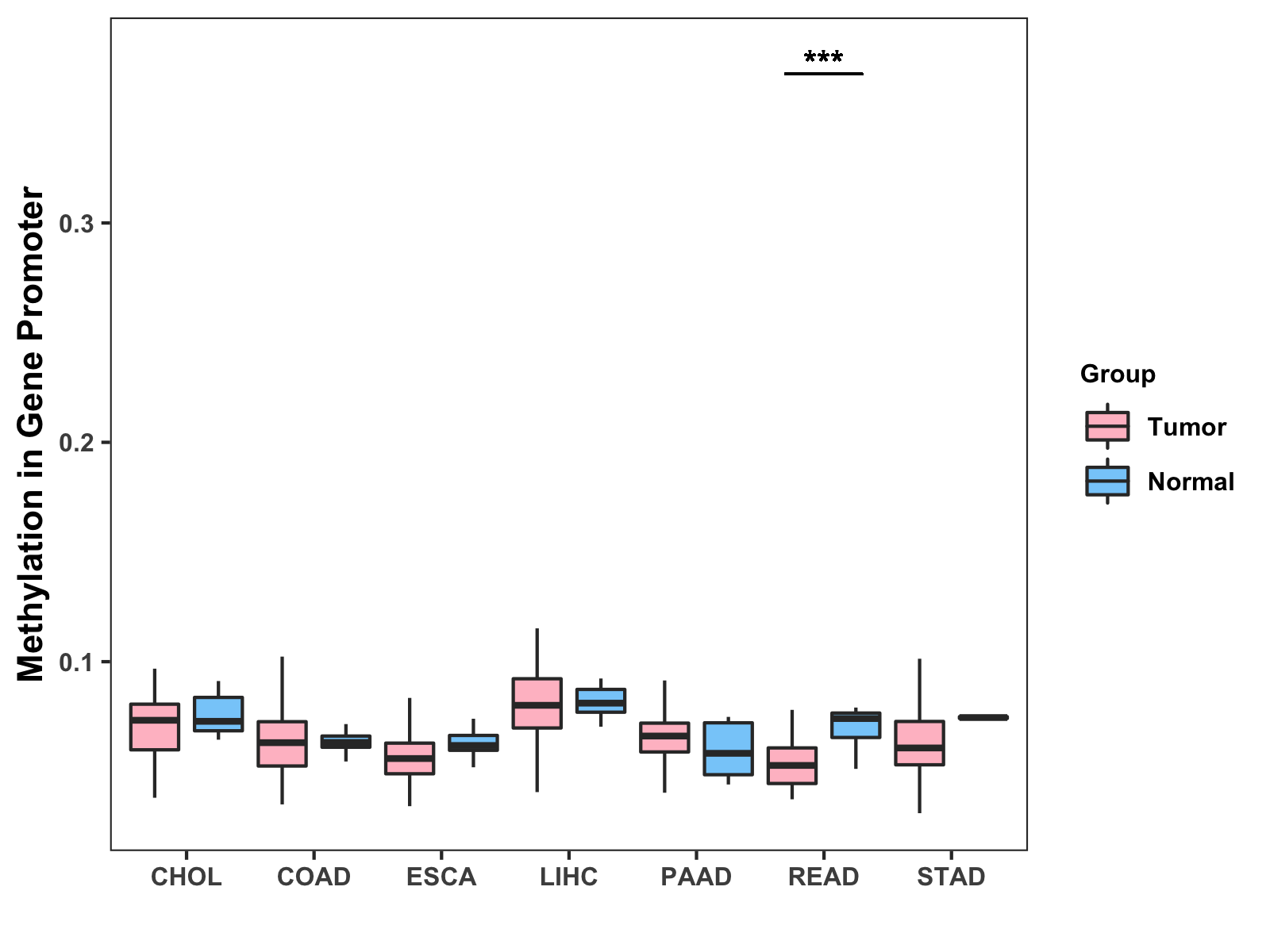 Boxplot of All Gastrointestinal Cancer ( * : 0.01-0.05 , ** : 0.005-0.01 , *** : 0.0001-0.005 , **** : < 0.0001 ) |